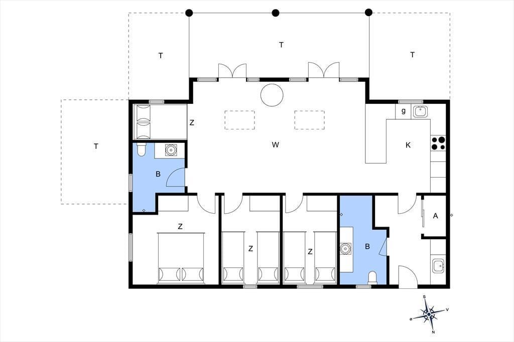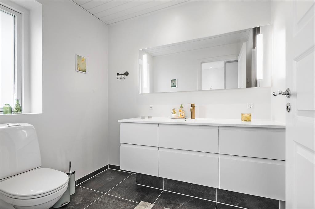 Velkommen indenfor: Fra entréen/bryggerset træder du ind i den store og lyse opholdsstue, hvorfra der er adgang til en delvist overdækket sydvendt terrasse. Det veludstyrede køkkenalrum har alt, hvad du behøver: Køleskab, separat fryser, induktionskomfur/ovn, mikrobølgeovn, opvaskemaskine samt en vinkøler. Huset har tre rummelige soveværelser med god skabsplads – ét med dobbeltseng og to værelser med enkeltsenge. Der er desuden en hyggelig alkove, hvor der er mulighed for 1-2 ekstra sovepladser. De to badeværelser er meget rummelige og komfortable. Huset er også udstyret med en centralstøvsuger.
