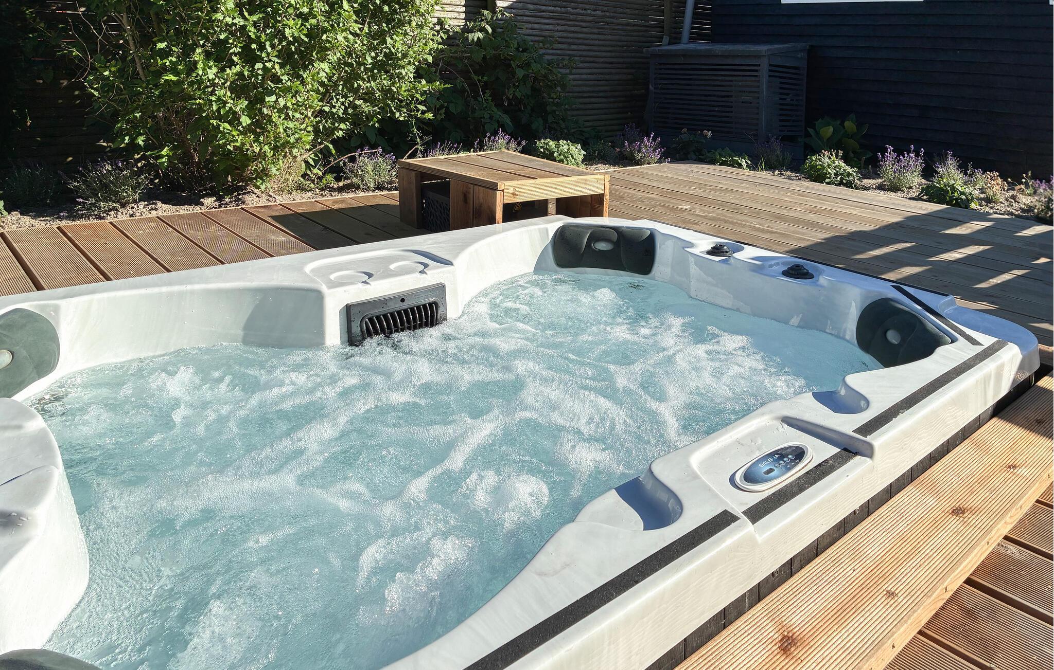 Moderne feriehus på Enø med spabad, legeplads og tæt på børnevenlig strand.
