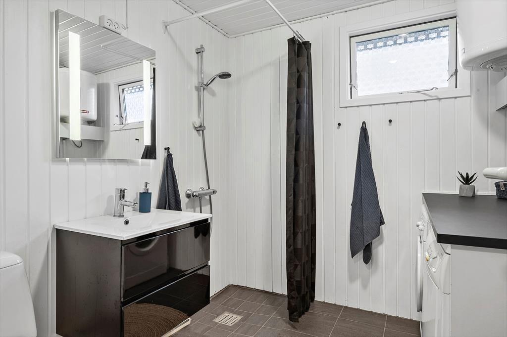 Alle i din familie kan se frem til at få nogle herlige dage, når I holder ferie her i det sortmalede træhus. Med tre soveværelser og et badeværelse med bruser passer planløsningen fint til seks personer, og to husdyr er også velkomne inden døre. Køkken og stue ligger i åben forbindelse, og i løbet af dagen er opholdsafdelingen det helt rette sted at samles til brætspil, kaffeslabberas og andre hyggestunder. Vil du slappe helt af, er det perfekt at læne sig tilbage i en lænestol nær brændeovnen, og hvis du vil forkæle de andre i selskabet, kan du gå i køkkenet for at bage boller eller kage.