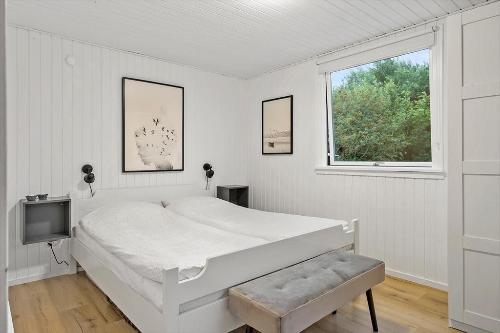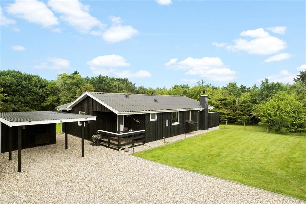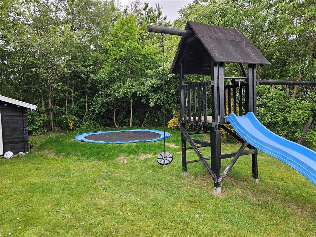 Den 1682 m2 store grund er helt aflukket og godt afskærmet af grøn randbeplantning, så både børn og hunde kan lege og pusle rundt i rolige og trygge rammer. De yngste feriegæster kommer bestemt ikke til at kede sig, for der er gynger, sandkasse, trampolin og legehus, og græsplænen indbyder til kongespil og andre familie aktiviteter. Sammen kan I også sætte jer på sommerhusets store og skønne terrasse for at nyde det gode vejr og tage dagen i helt roligt tempo. Bålstedet er et hit for jer, der elsker snobrød og ristede skumfiduser, og hvis du er vild med udelivet, kan du endda overnatte ude i sheltere.