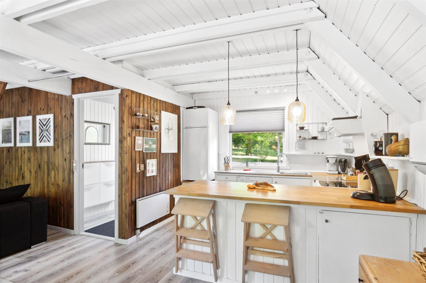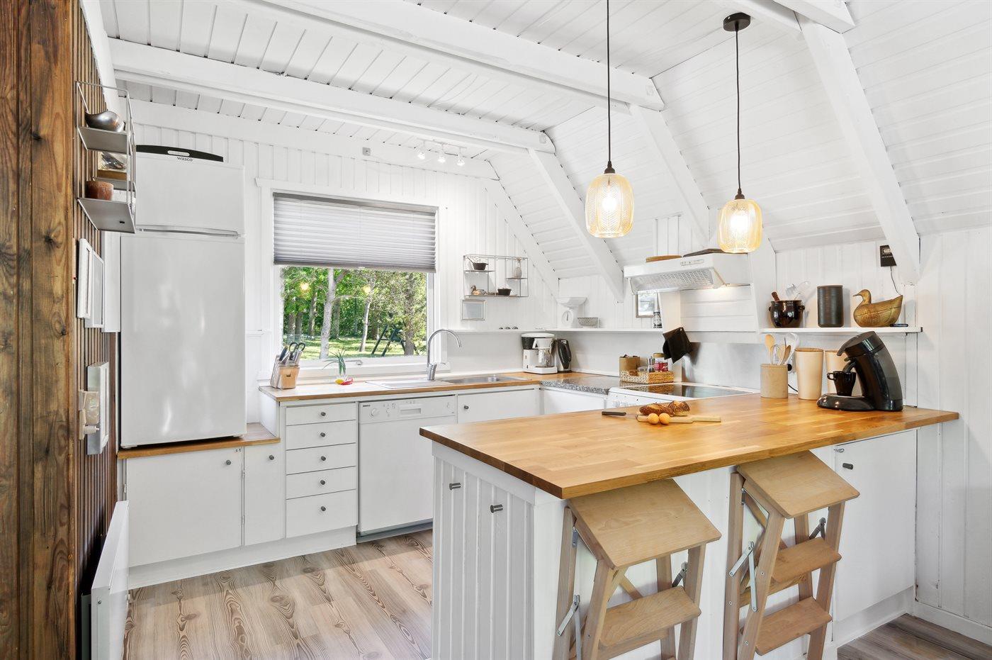 Køkkenet er bl.a. udstyret med 1 køle/-fryseskab, 4 keramiske kogeplader, varmluftovn samt opvaskemaskine. Der er 1 badeværelse med bruseniche og 1 toilet.