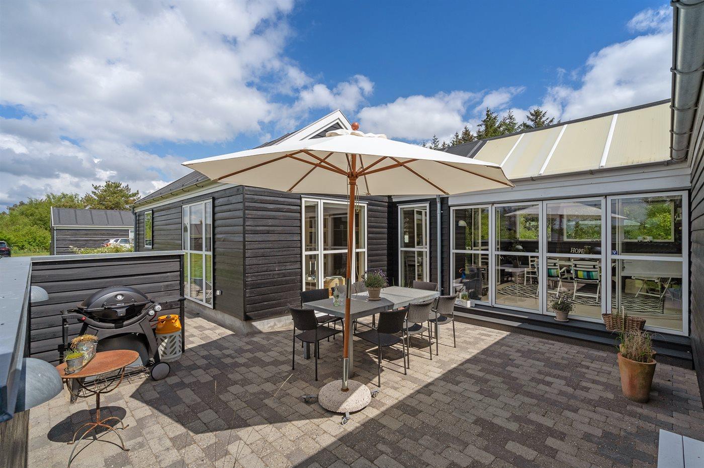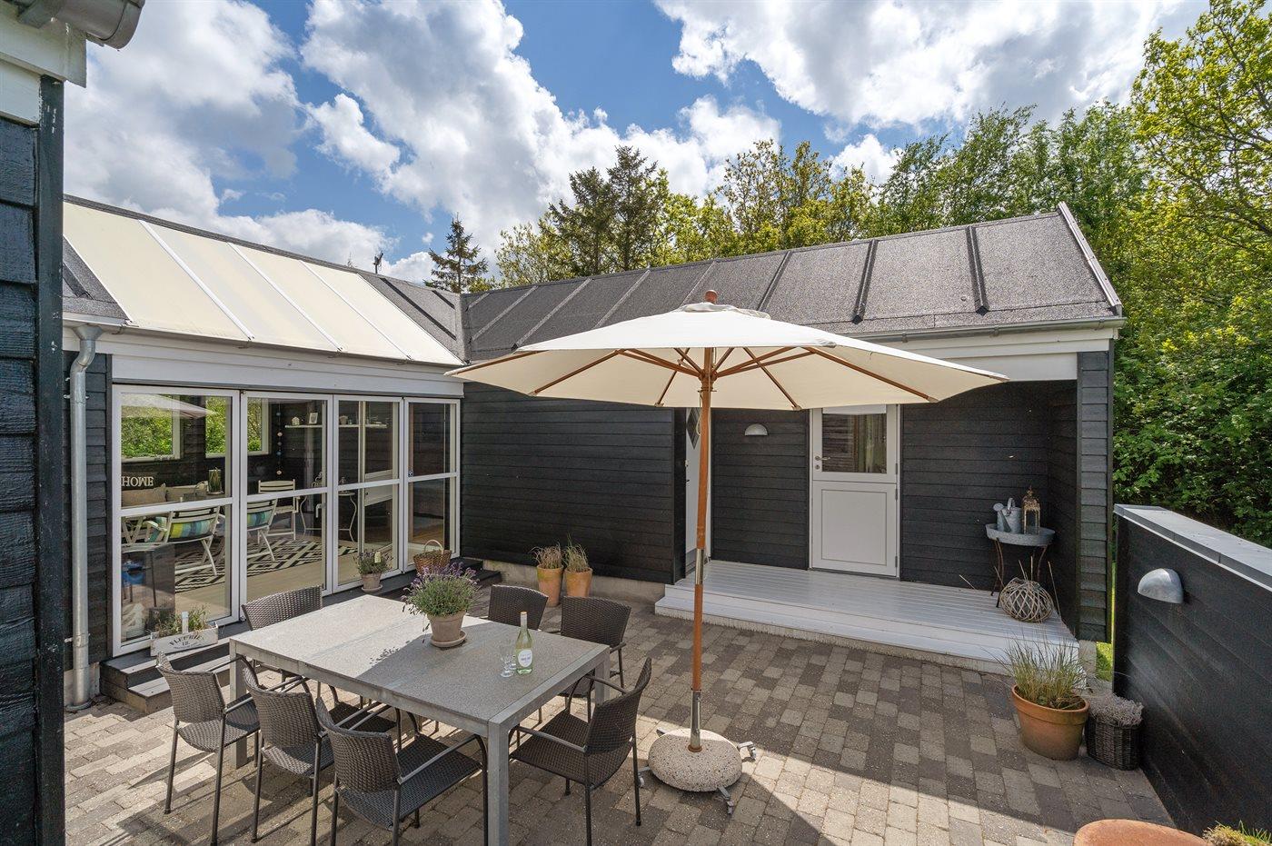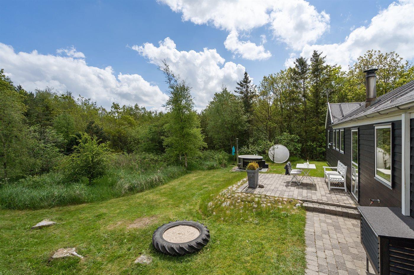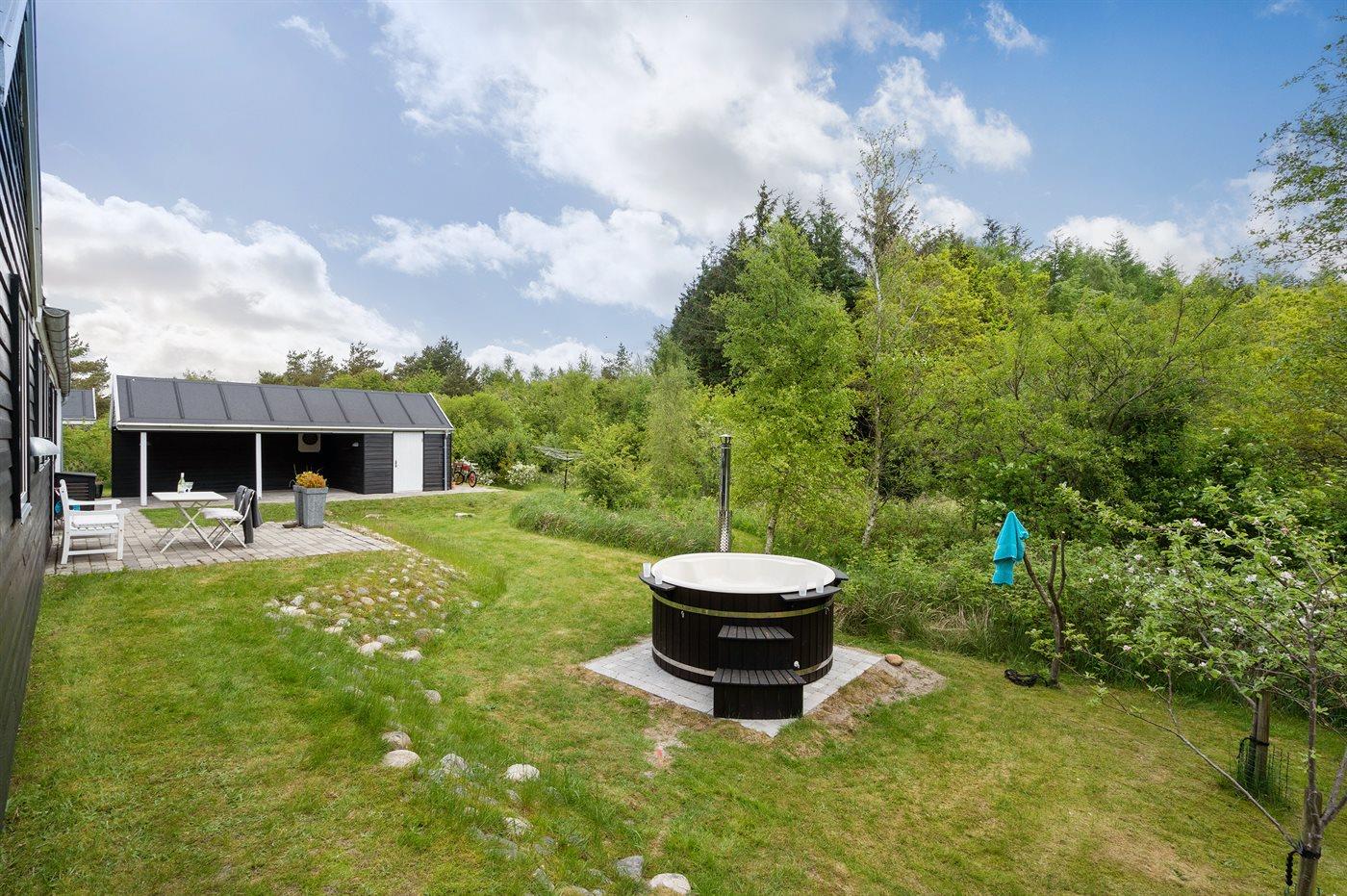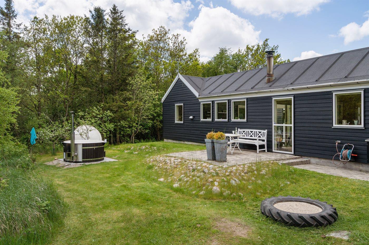 Et utrolig flot sommerhus beliggende for enden af en stikvej – og særdeles velegnet til 2 familier, som ønsker at tilbringe ferien sammen. Til huset hører en dejlig indhegnet terrasse med et skønt vildmarksbad til 5 personer, som kan benyttes både sommer og vinter.