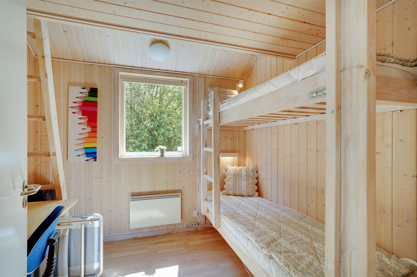 Der er i alt 4 soveværelser. Sovepladserne fordeler sig på: 6 sovepladser i dobbeltsenge. 2 sovepladser i køjeseng.- 2 af disse sovepladser befinder sig i et anneks. Derudover er der 1 stk. barneseng.