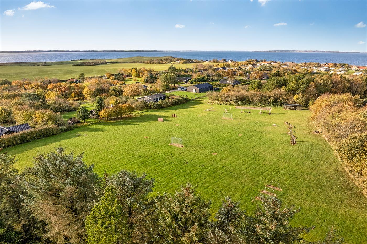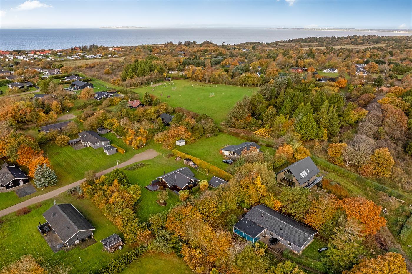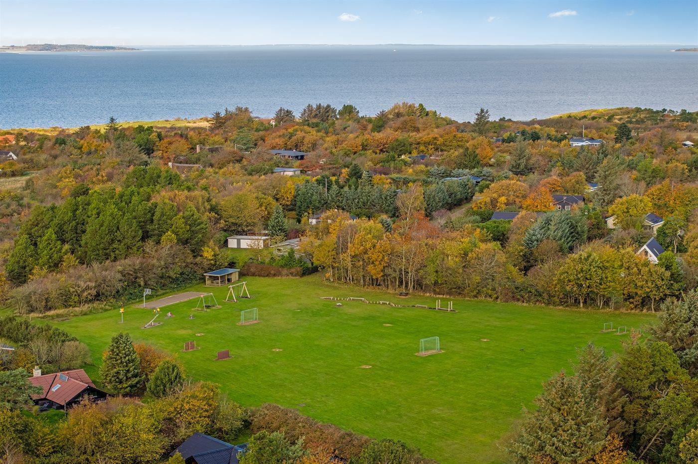 Ferieboligen er beliggende på en 1233 m² stor havegrund. Der er 75000 m til havet. Der er 800 m til fjorden. Nærmeste forretning er beliggende i en afstand af 700 m. Der er en golfbane i en afstand af 16000 m. Til ferieboligen hører åbent terrasseareal. Gynge. Sandkasse. Legetårn. Der ligger en legeplads i en afstand af 150 m. Grill til rådighed. Parkering ved ferieboligen.
