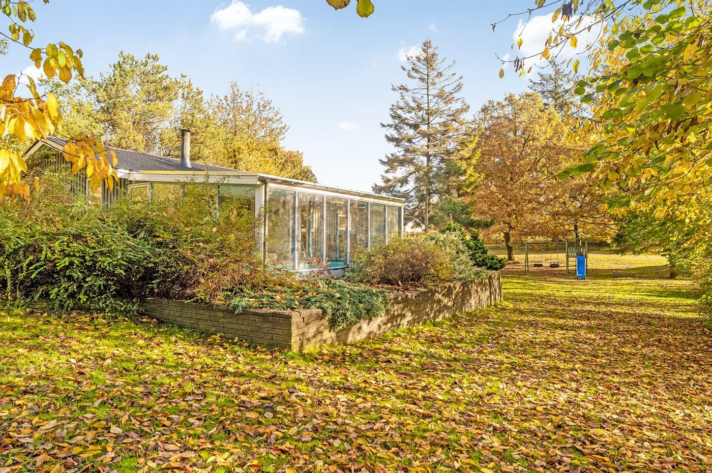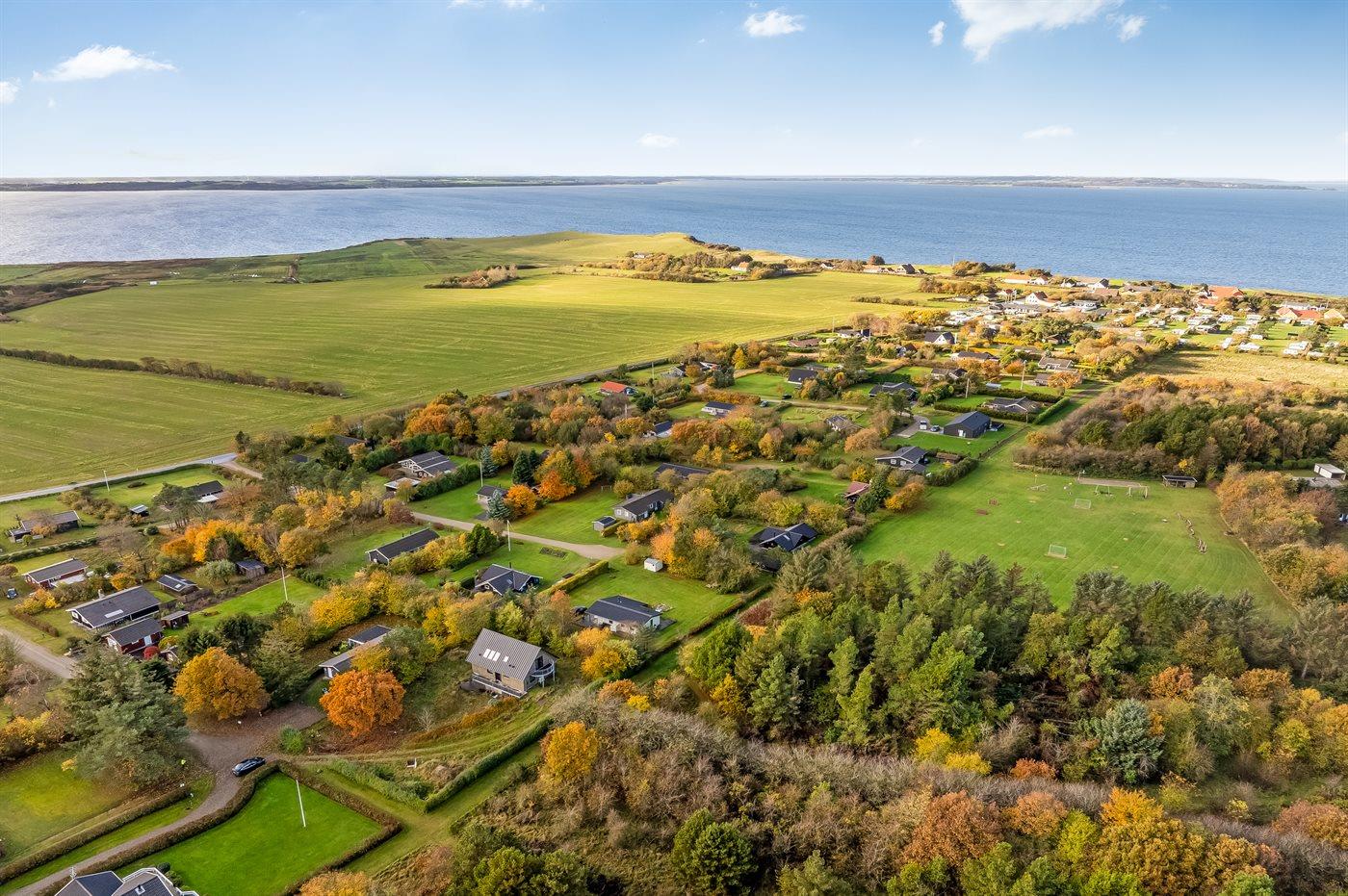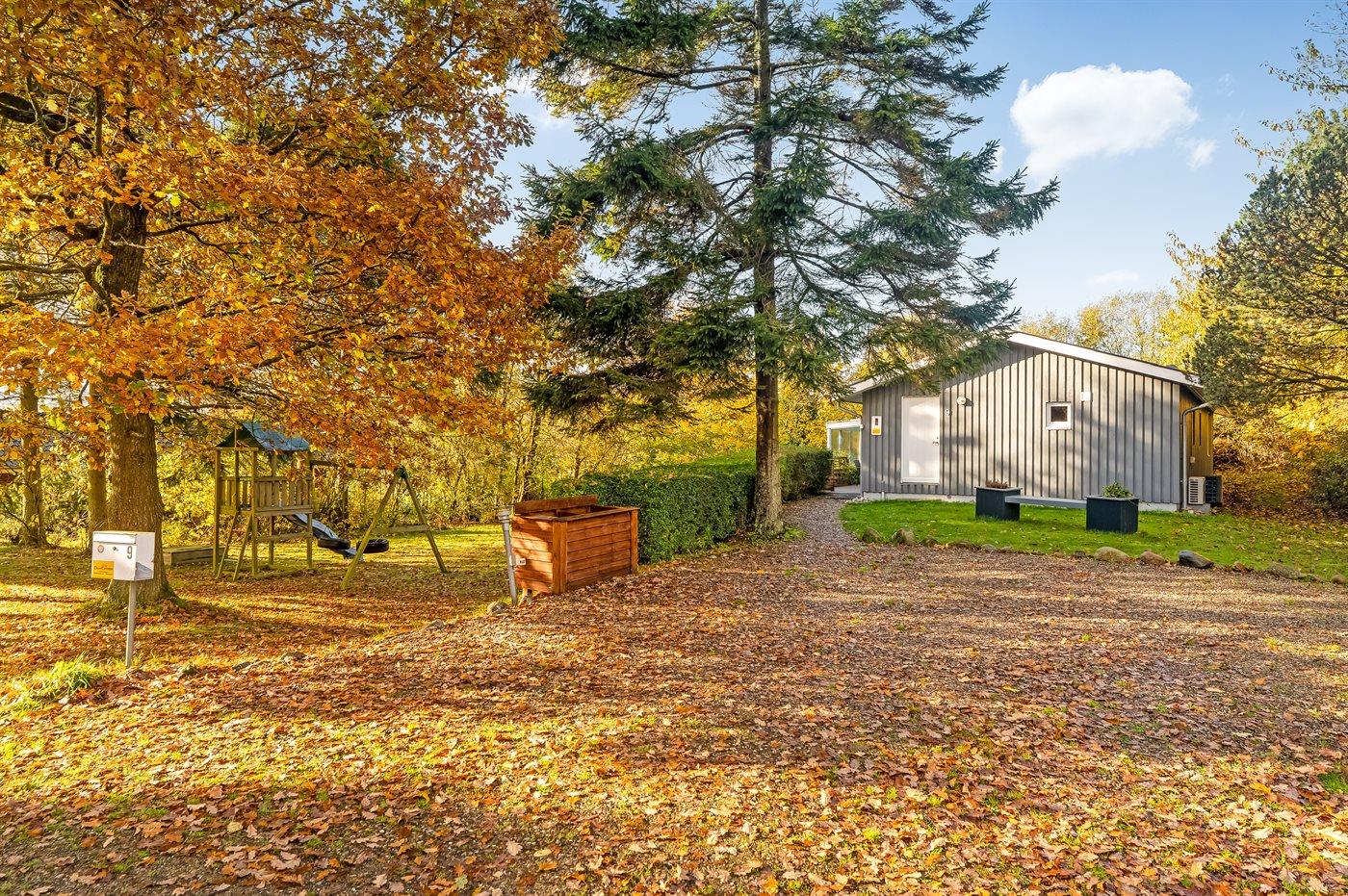 Ferieboligen er beliggende på en 1233 m² stor havegrund. Der er 75000 m til havet. Der er 800 m til fjorden. Nærmeste forretning er beliggende i en afstand af 700 m. Der er en golfbane i en afstand af 16000 m. Til ferieboligen hører åbent terrasseareal. Gynge. Sandkasse. Legetårn. Der ligger en legeplads i en afstand af 150 m. Grill til rådighed. Parkering ved ferieboligen.