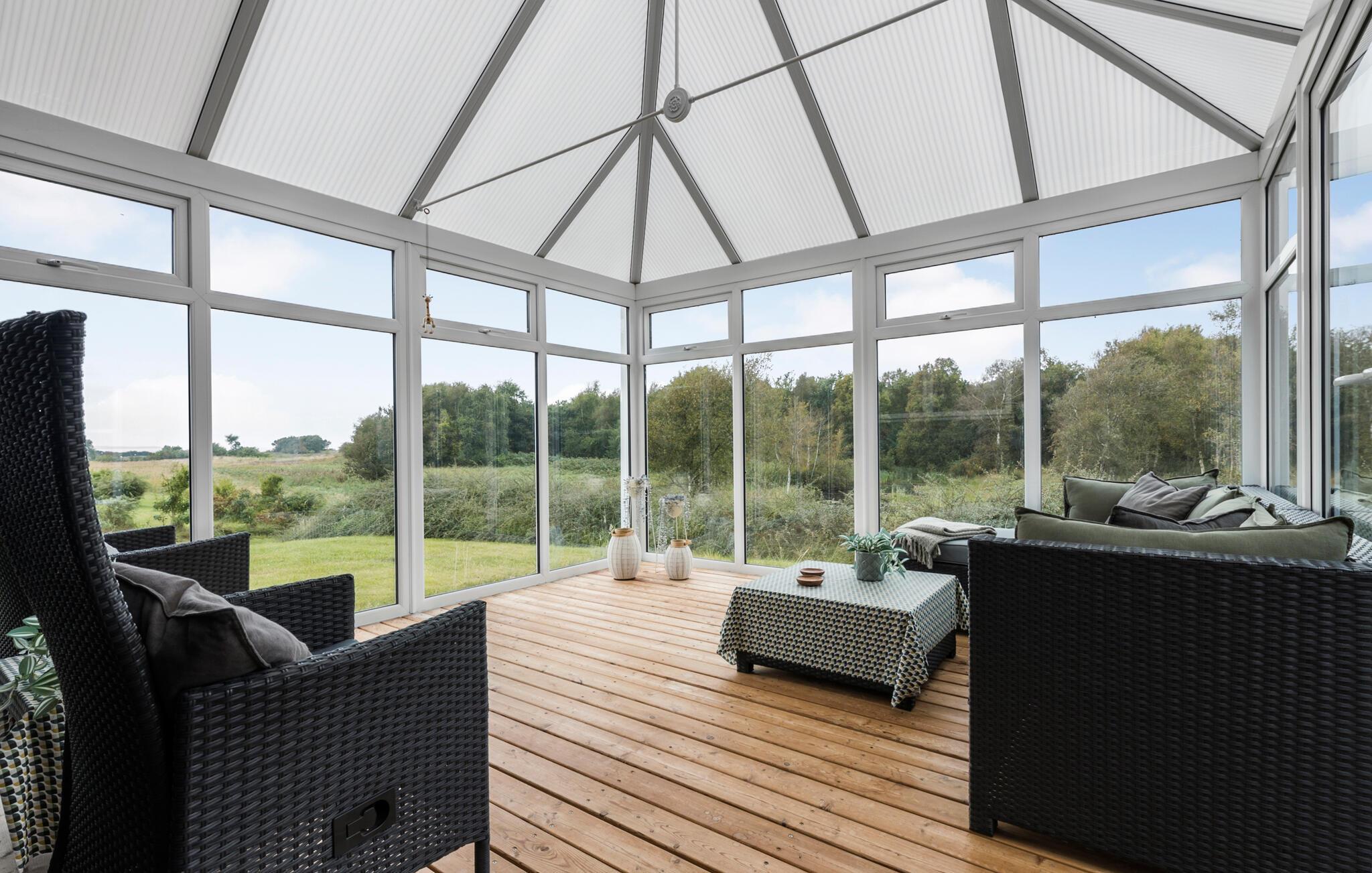 Udendørs finder I to dejlige terrasser, hvor den sydvendte terrasse byder på masser af plads. Den er helt afskærmet og privat, ideel til afslapning og uforstyrrede stunder. Den anden, lidt mindre terrasse, byder på en betagende udsigt over søen, skoven, fjorden og engene. Den smukke udestue med panoramaudsigt over fjorden og det omkringliggende landskab er desuden det perfekte sted til at nyde det mangfoldige dyreliv i Vesthimmerlands smukke natur. Brug udendørskøkkenet og grillen til at tilberede lækre retter i den friske luft.