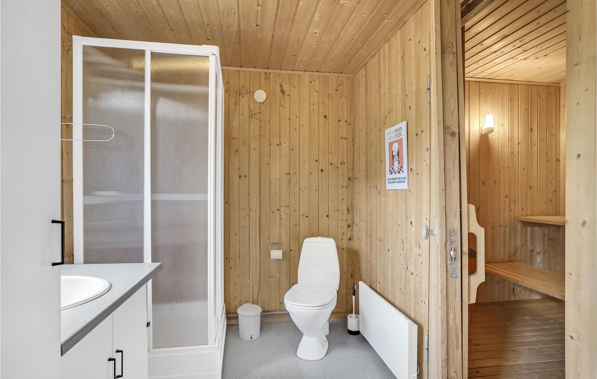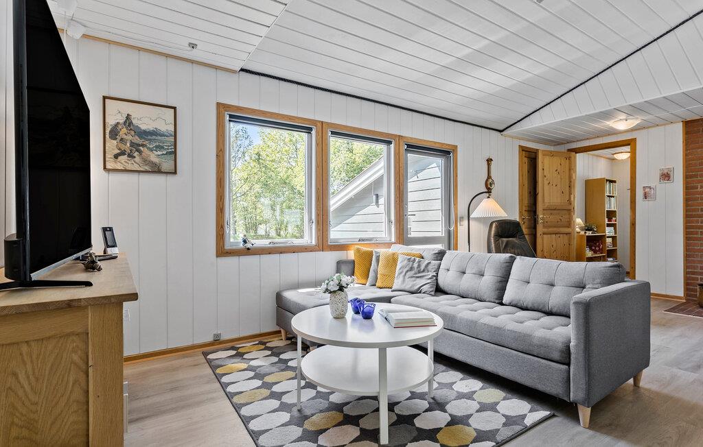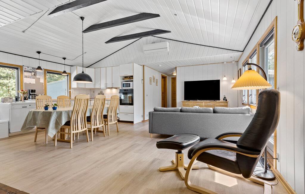 Det lyse køkken er åbent forbundet med spiseafdelingen og stuen, som har brændeovn. Nyd den særlige atmosfære, som dette hus har, og bryg en god kop kaffe, som I kan nyde udenfor på den åbne terrasse med udsigt over den grønne have. Her kan børnene få mange timer til at gå med at lege på gyngen eller i sandkassen. Slap i jacuzzien eller saunaen, og kom helt ned i gear efter en aktiv dag. Huset har også et rummeligt anneks på 27 m², hvor I udover et soveværelse også finder et badeværelse og sauna.