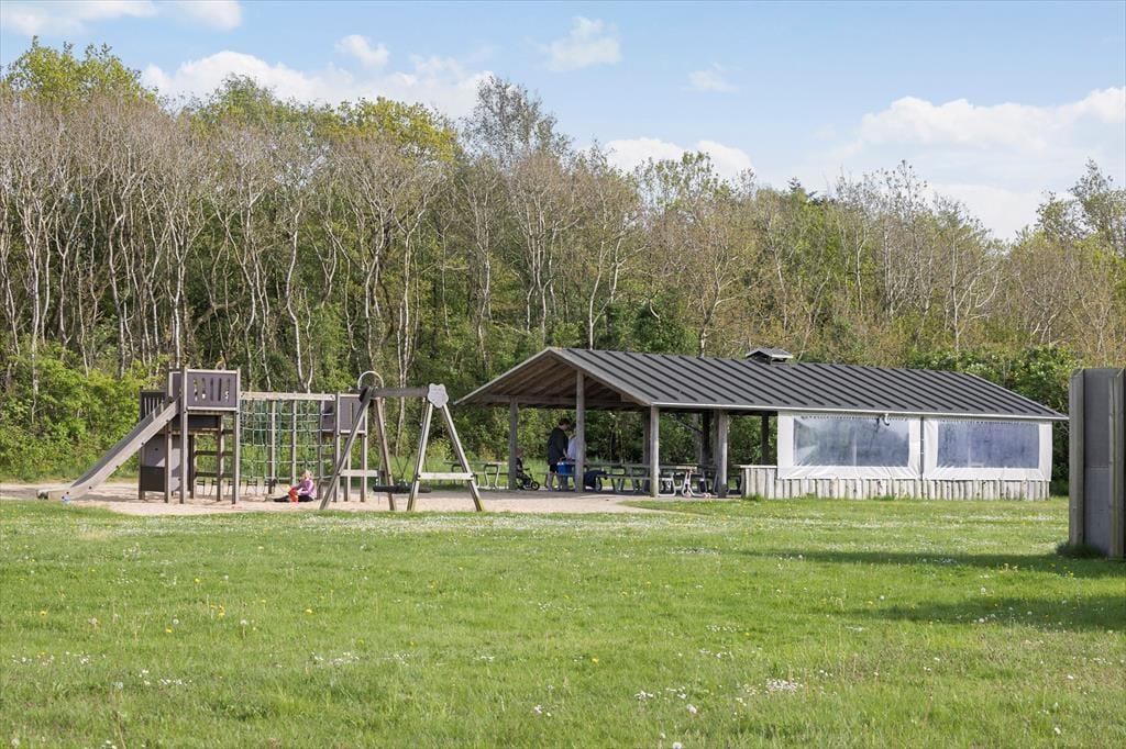 Fra huset har du kun cirka 100 meter hen for enden af den lukkede vej Stranddalen, hvor du finder et grønt fællesareal med fodboldmål, legeplads, petanquebane, grillhytte og shelters. Du kan også nemt komme ind i skoven, hvis du vil gå en tur i fredfyldte omgivelser – og det er naturligvis også oplagt at slutte af ved stranden, hvor du kan få et dyp i bølgerne fra badebroen eller bare nyde udsigten over Limfjorden. Eskov Strandark ligger allernordligst på Salling, så du har kort afstand til Branden, hvis du vil med den lille færge på udflugt til Fur. En udflugt til Glyngøre kan måske også friste, og hvis børnene skal forkæles, ligger Jesperhus Blomsterpark kun en halv time væk i bil.