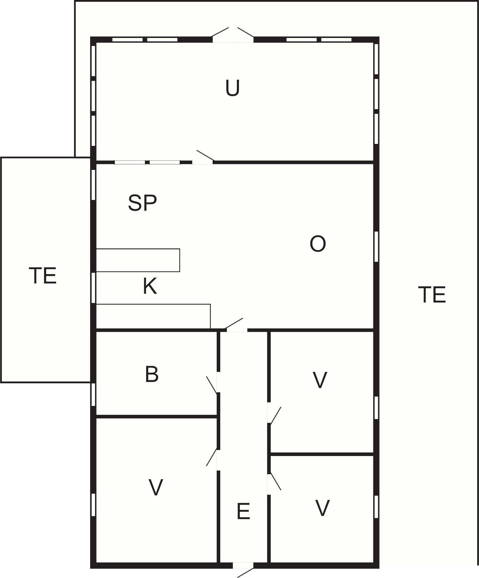 Sommerhuset indeholder tre soveværelser: ét med dobbeltseng, ét med to enkeltsenge samt ét værelse med opredning, hvilket gør huset ideelt til både familie og mindre grupper.