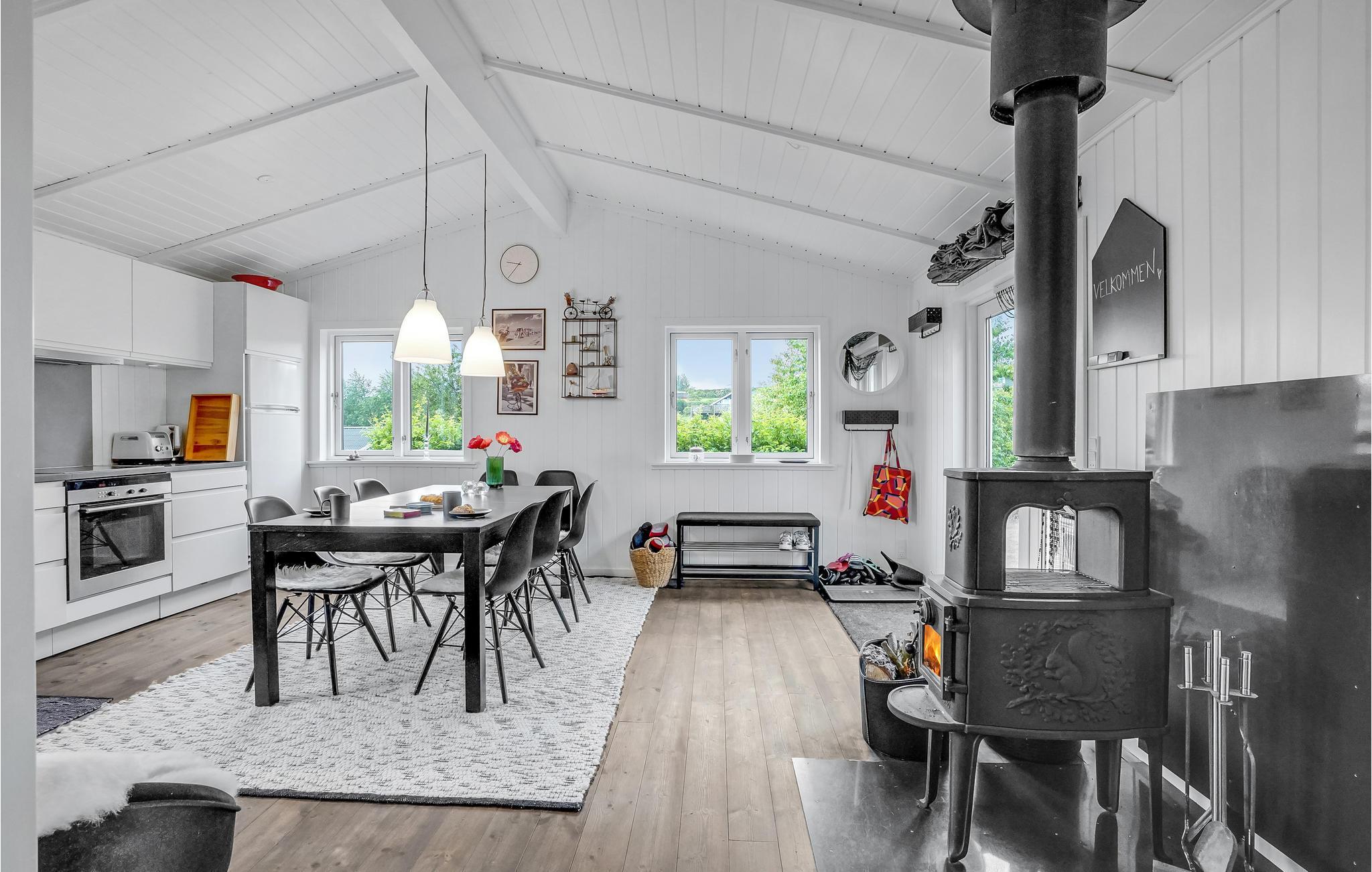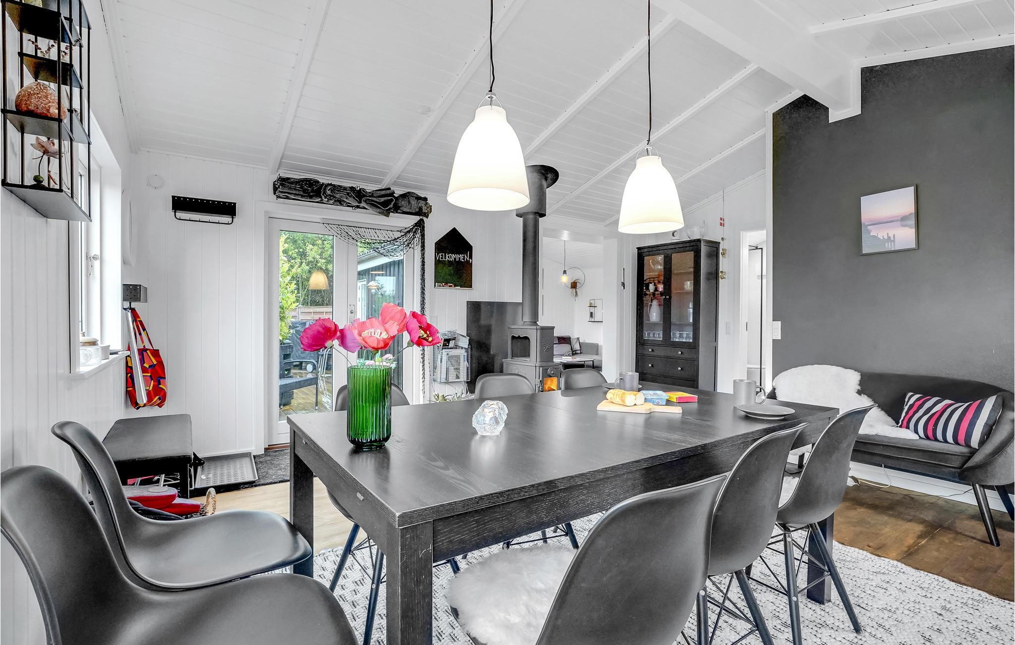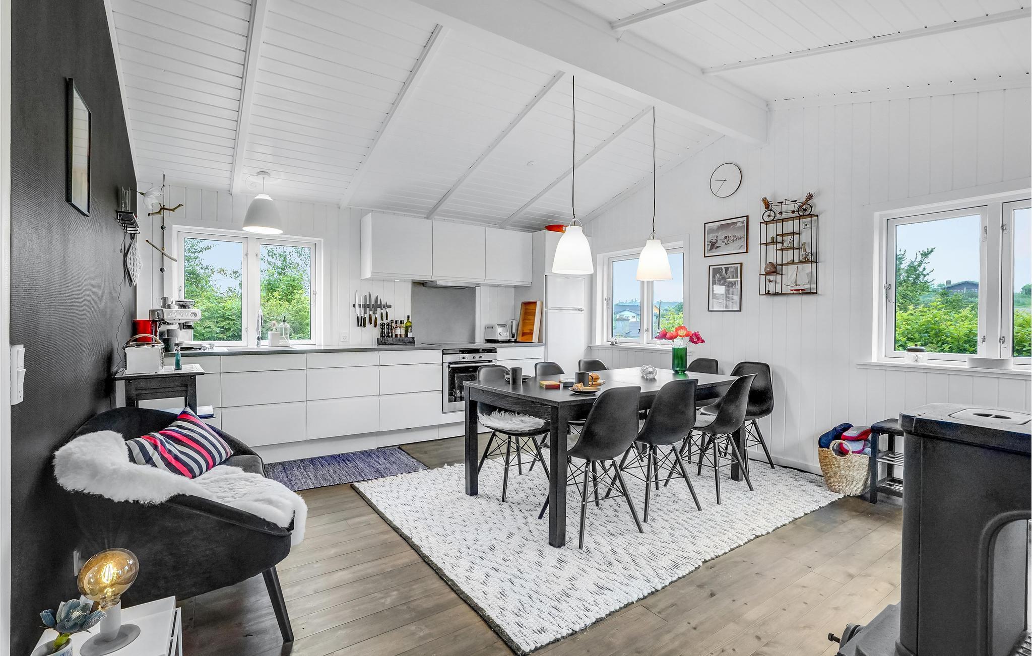 Dette feriehus byder jer velkommen med en nobel atmosfære, som er skabt af valget af møbler i sorte, grå og hvide nuancer. Her kan I opleve blandingen af ??modernitet og komfort helt tæt på. Nyd for eksempel pejsens knitren, mens I mødes ved bordet for at spise en hyggelig middag sammen og slutte så aftenen af ??med et glas vin og underholdningsspil. Udendørs kan I bruge grillen på sommerdagene og haven byder på masser af privatliv.