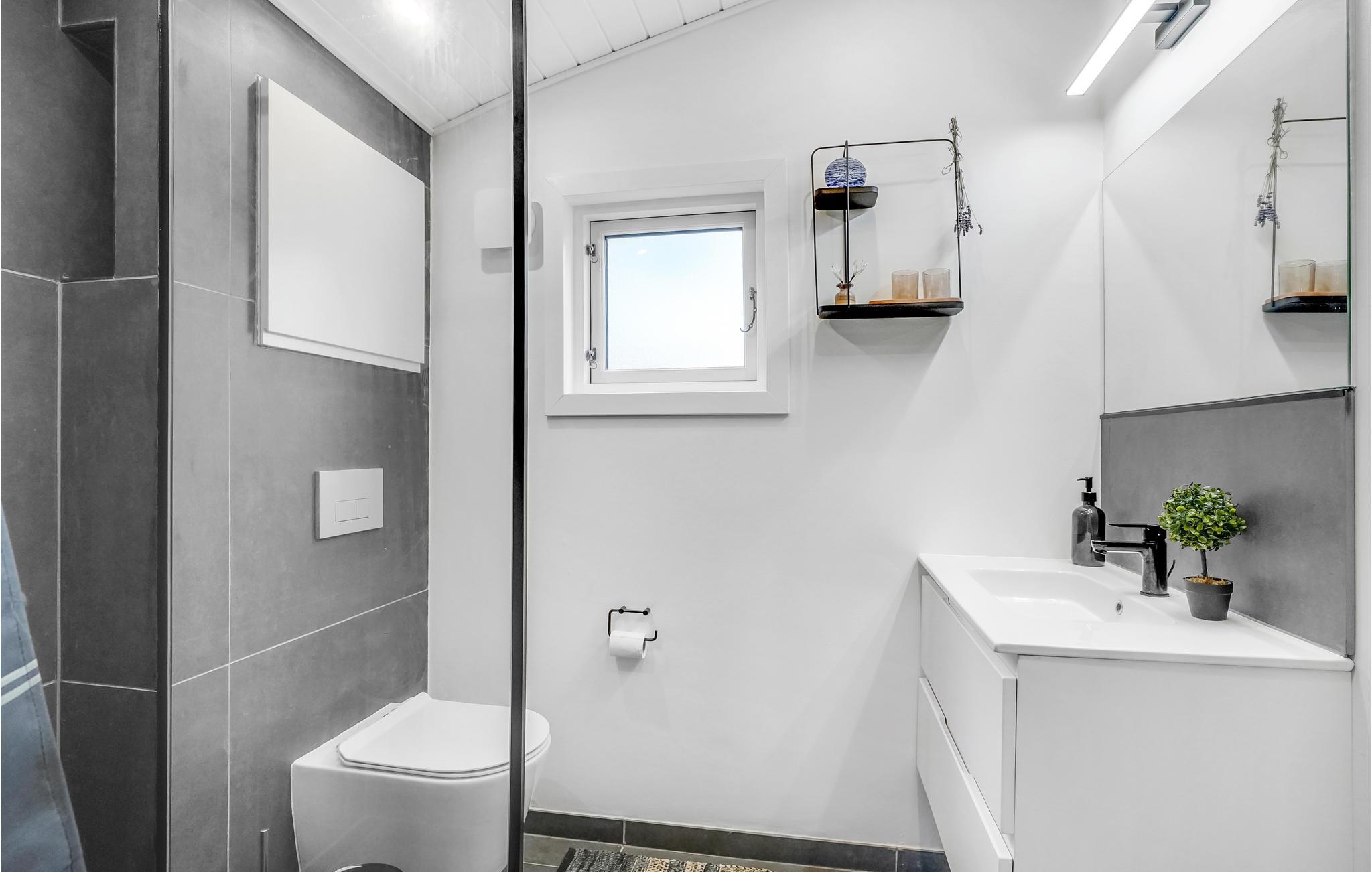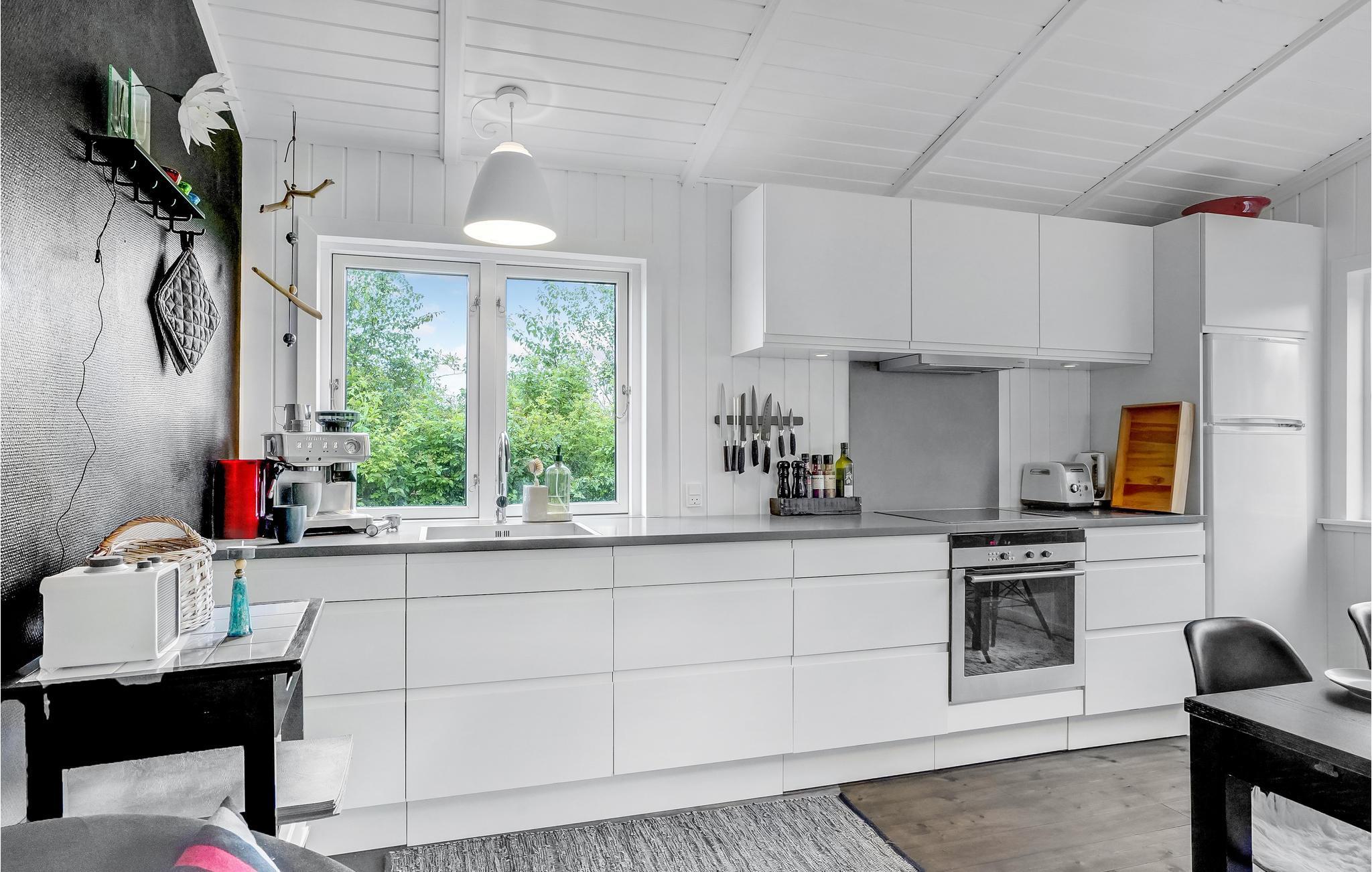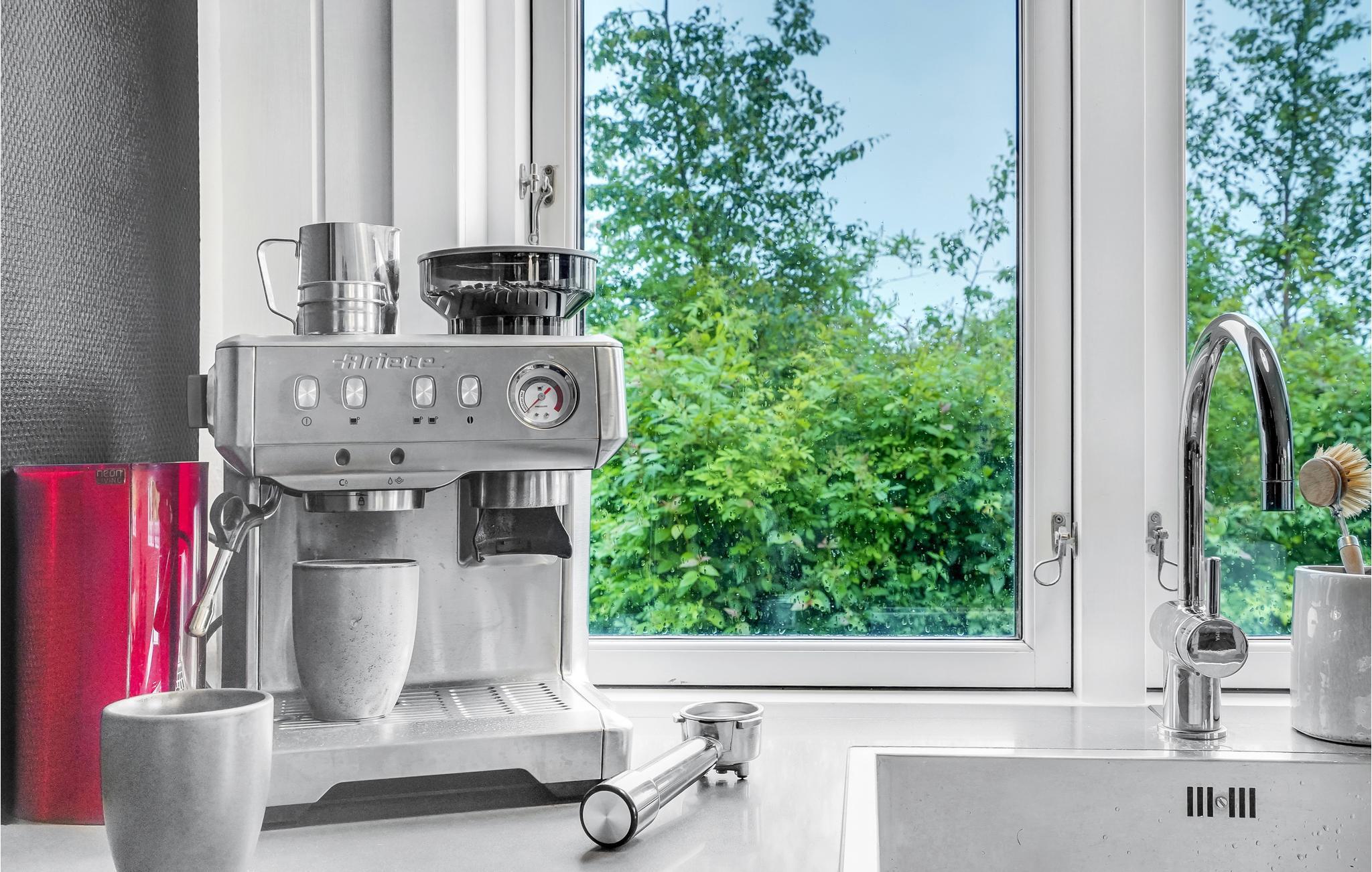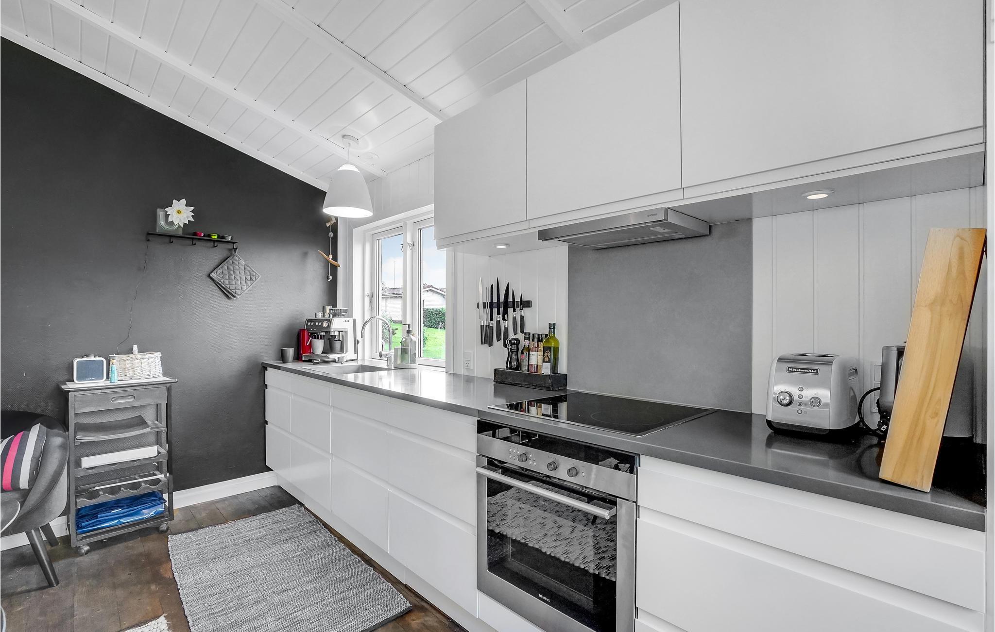 Dette feriehus byder jer velkommen med en nobel atmosfære, som er skabt af valget af møbler i sorte, grå og hvide nuancer. Her kan I opleve blandingen af ??modernitet og komfort helt tæt på. Nyd for eksempel pejsens knitren, mens I mødes ved bordet for at spise en hyggelig middag sammen og slutte så aftenen af ??med et glas vin og underholdningsspil. Udendørs kan I bruge grillen på sommerdagene og haven byder på masser af privatliv.