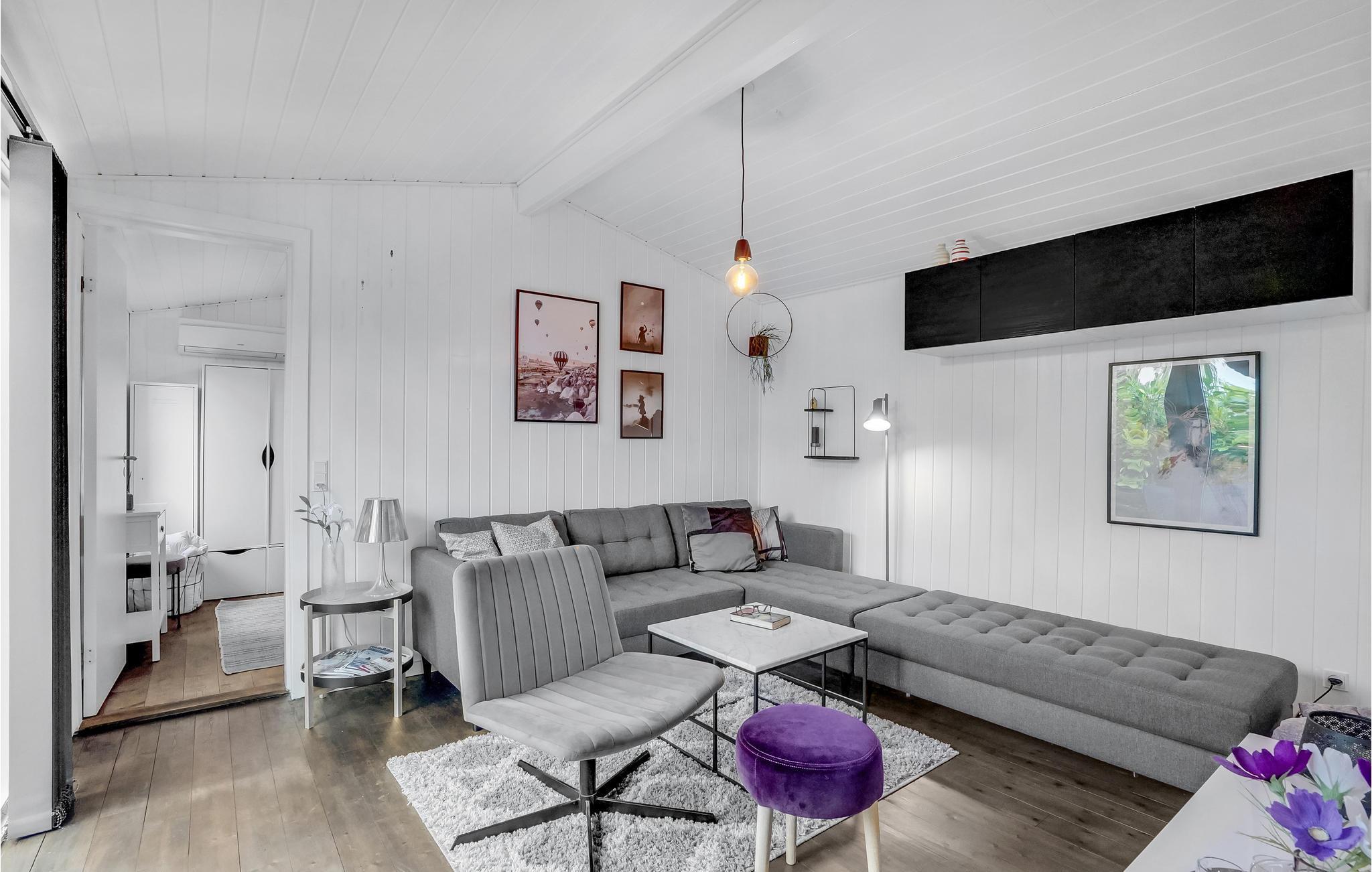 Nyd et moderne sommerhus i Eskov Strandpark med pejs, have og tæt på børnevenlig strand.