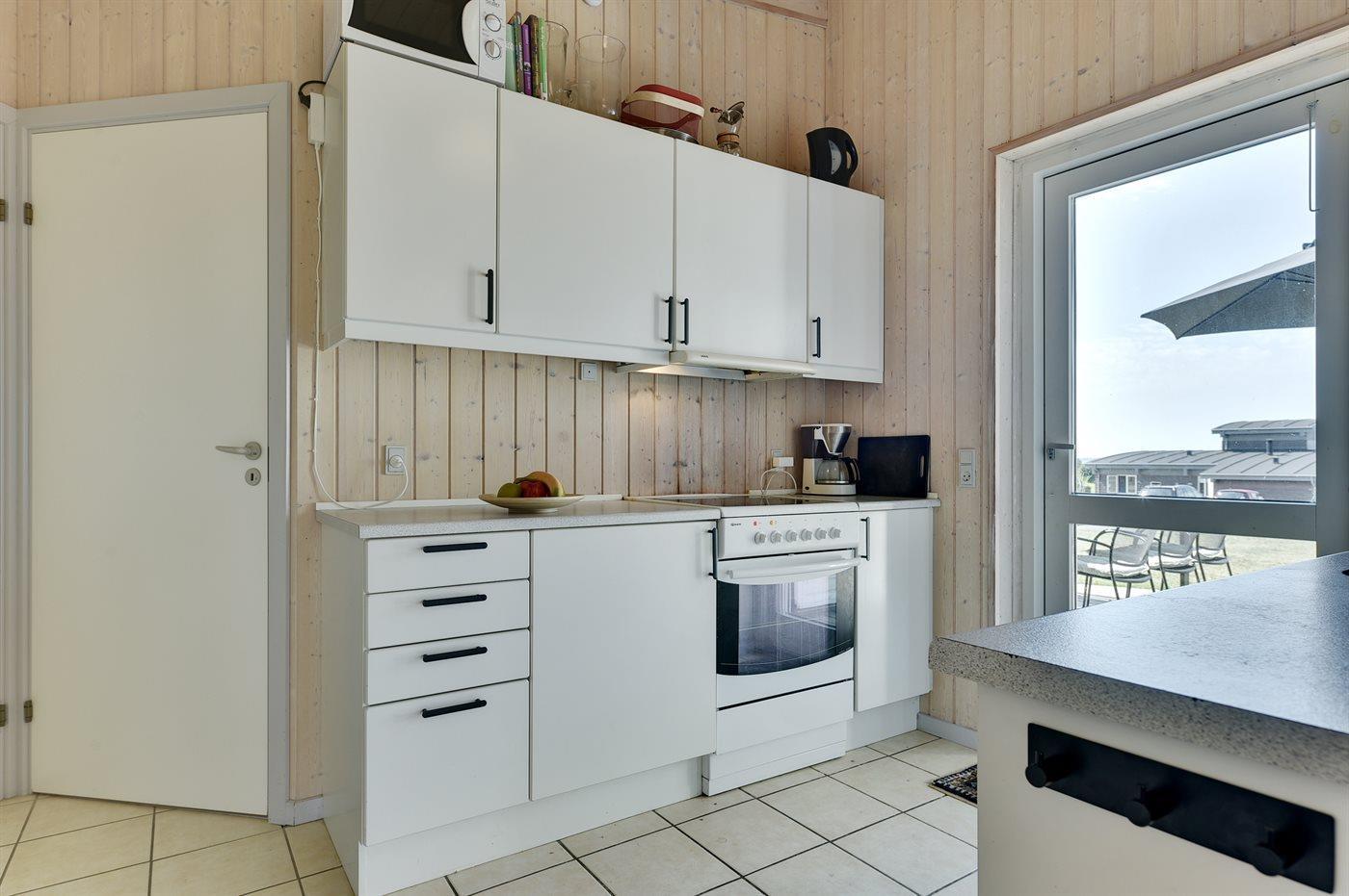Køkkenet er udstyret med 1 køleskab. Der er 4 keramiske kogeplader, varmluftovn, mikrobølgeovn samt opvaskemaskine Der er gulvvarme i køkkenet.