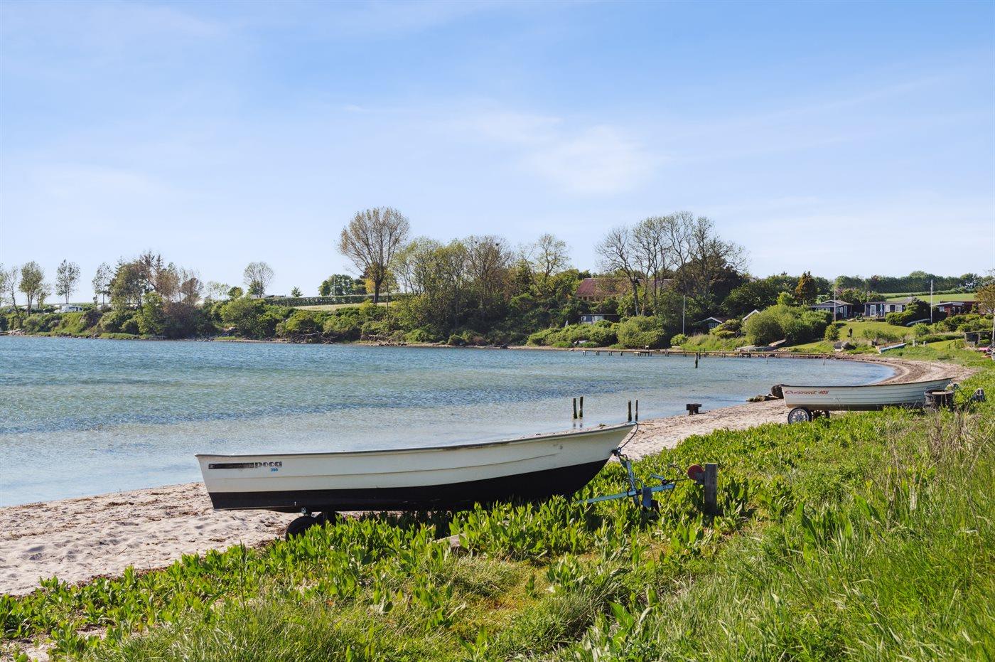 Ferieboligen er beliggende på en 300 m² stor naturgrund. Der er 520 m til havet. Der er en badebro i nærheden. Nærmeste forretning er beliggende i en afstand af 5700 m. Til ferieboligen hører åbent terrasseareal. Desuden er der overdækket terrasse. Der er redskabsrum. Der ligger en legeplads i en afstand af 220 m. Grill til rådighed. Parkering ved ferieboligen.