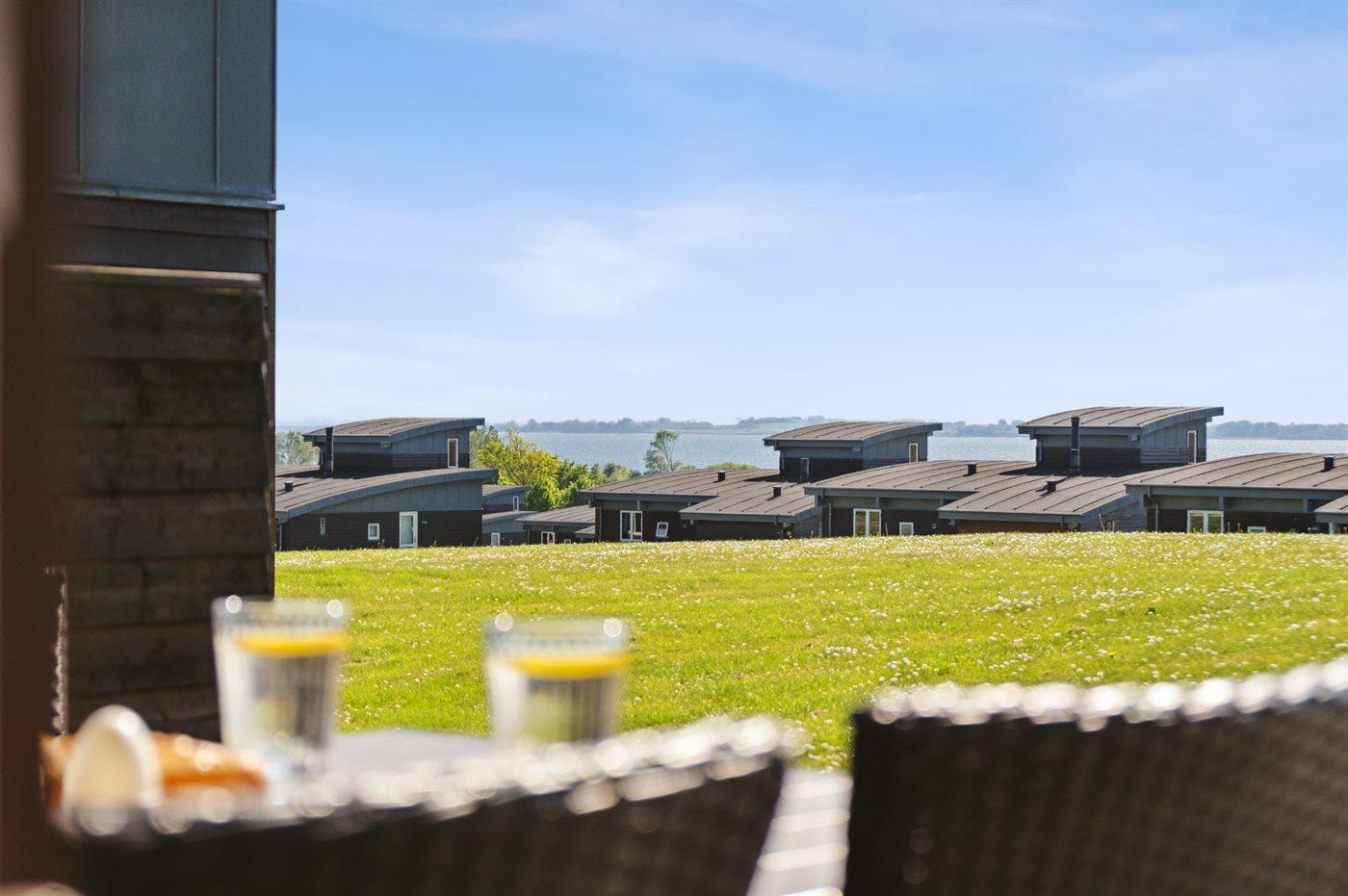 Lyst feriehus med fantastisk udsigt til Sydfynske Øhav og spa i det populære Mosegården-område.