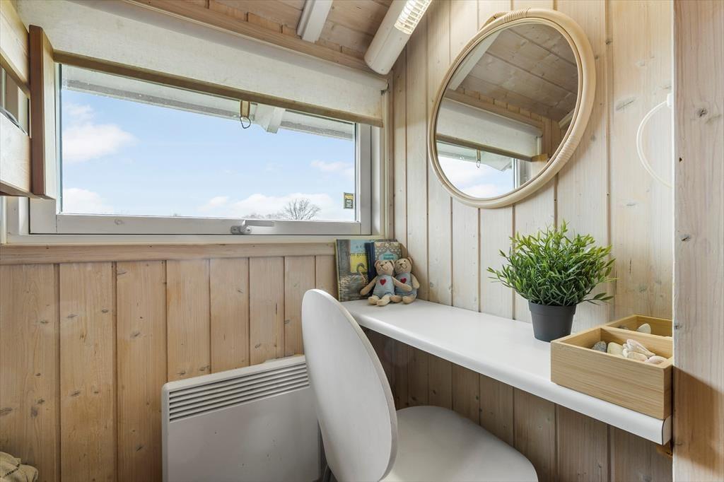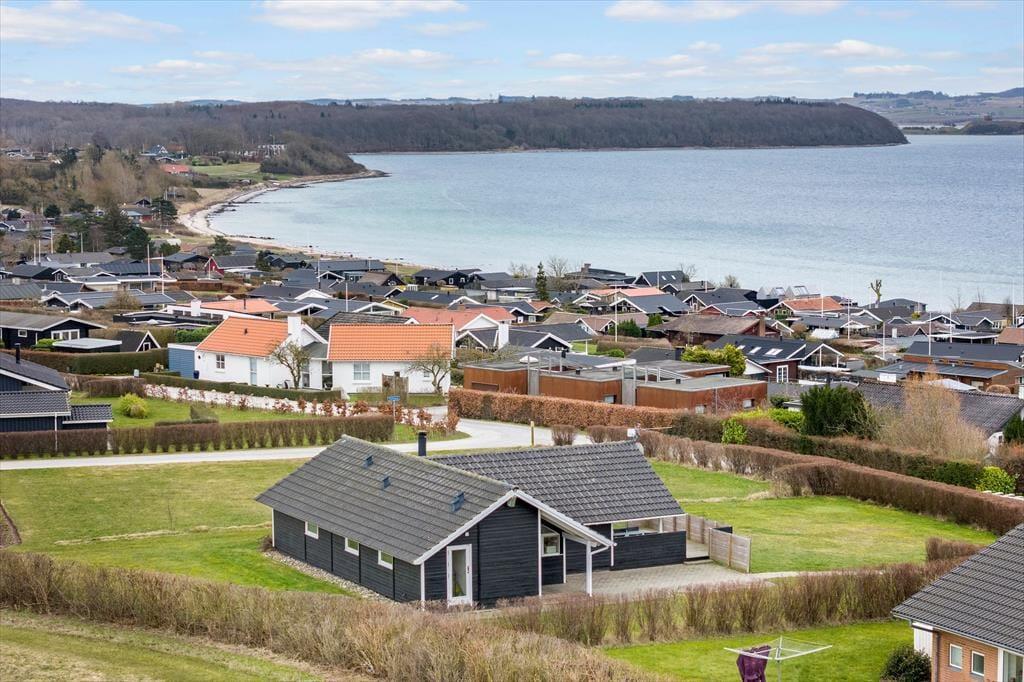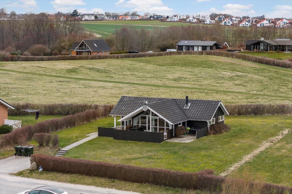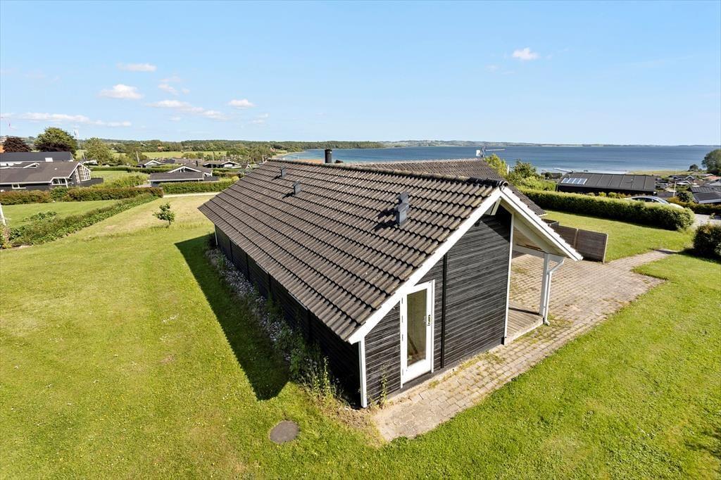 Hyggeligt sommerhus ved Følle Strand med sauna, spabad og havudsigt, perfekt til en aktiv ferie i Østjylland.