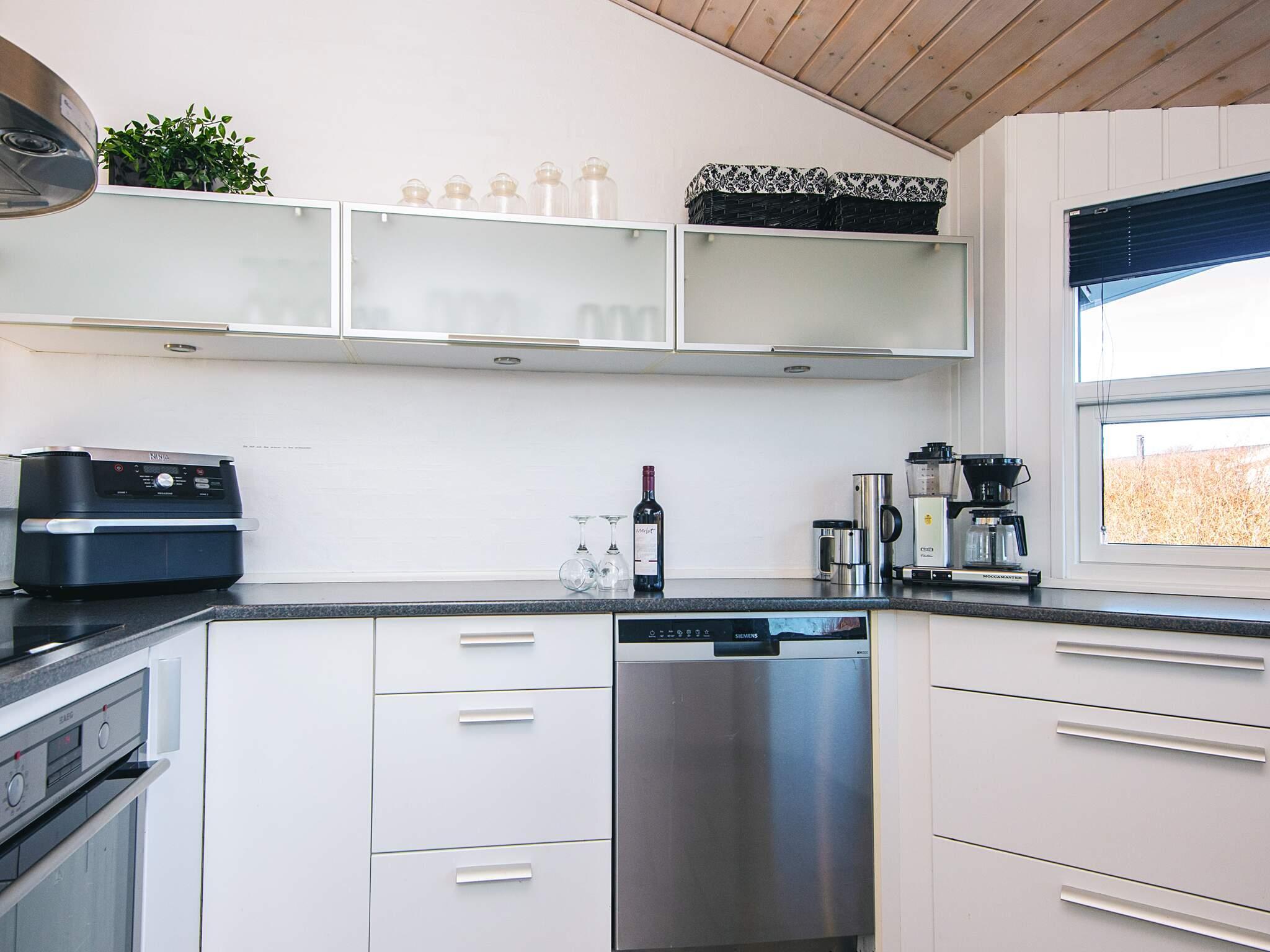 Fuldt udstyret køkken med kaffemaskine, induktionskomfur, separat ovn, mikroovn, køleskab/fryser og opvaskemaskine.