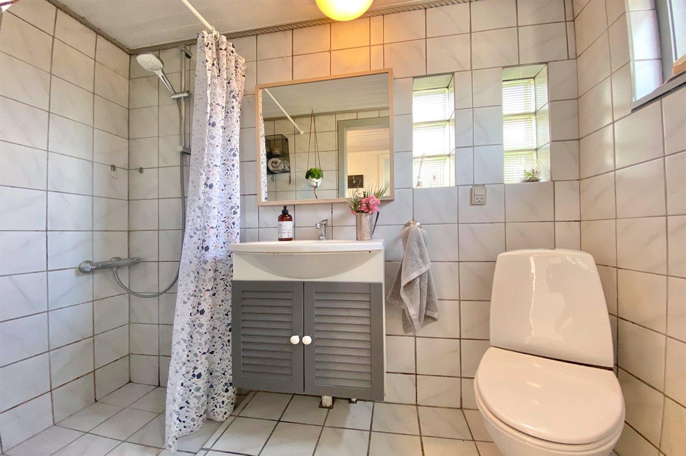 Der er 1 badeværelse med bruseniche og 1 toilet.. Der er gulvvarme på 1 badeværelse.