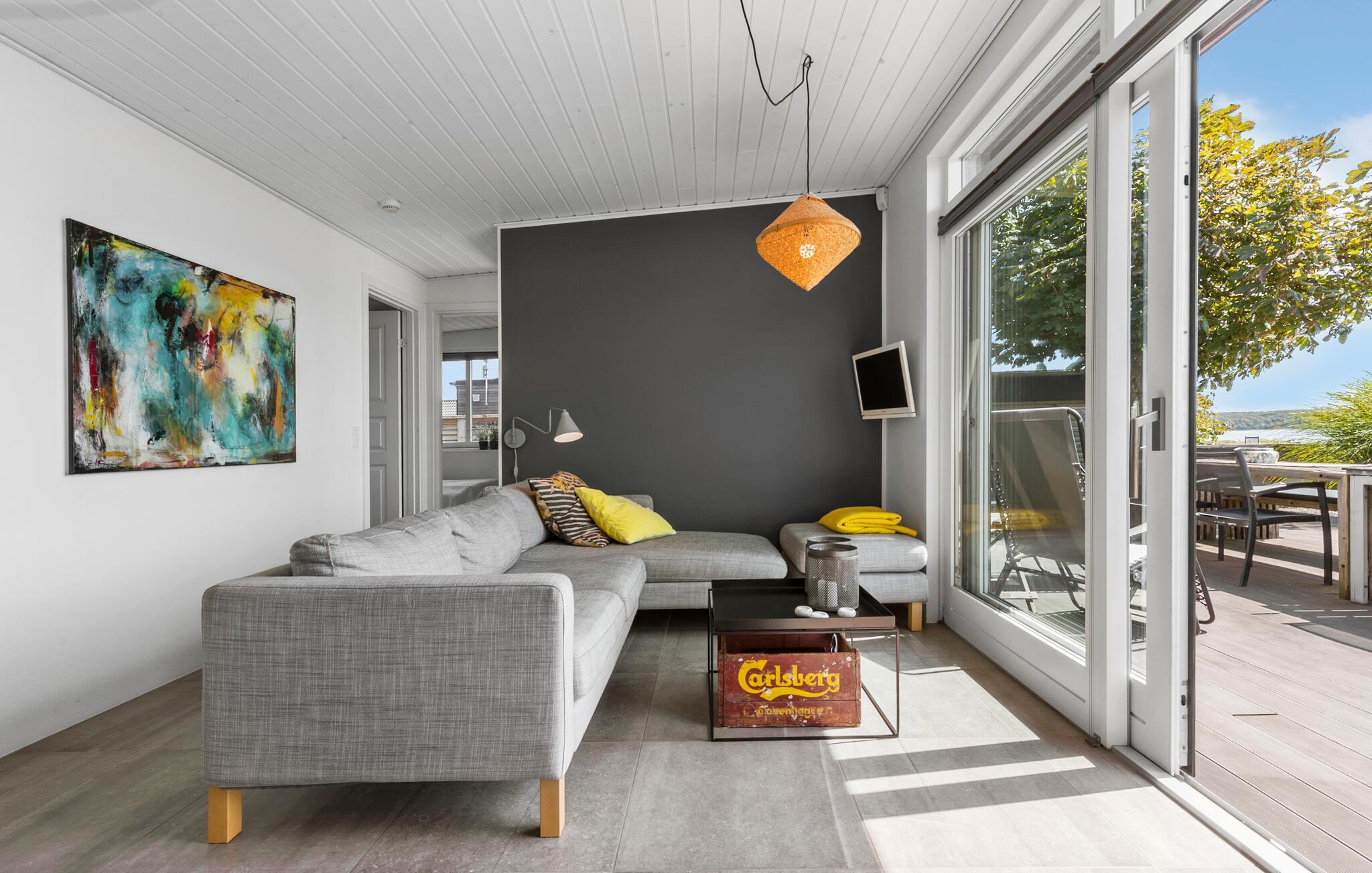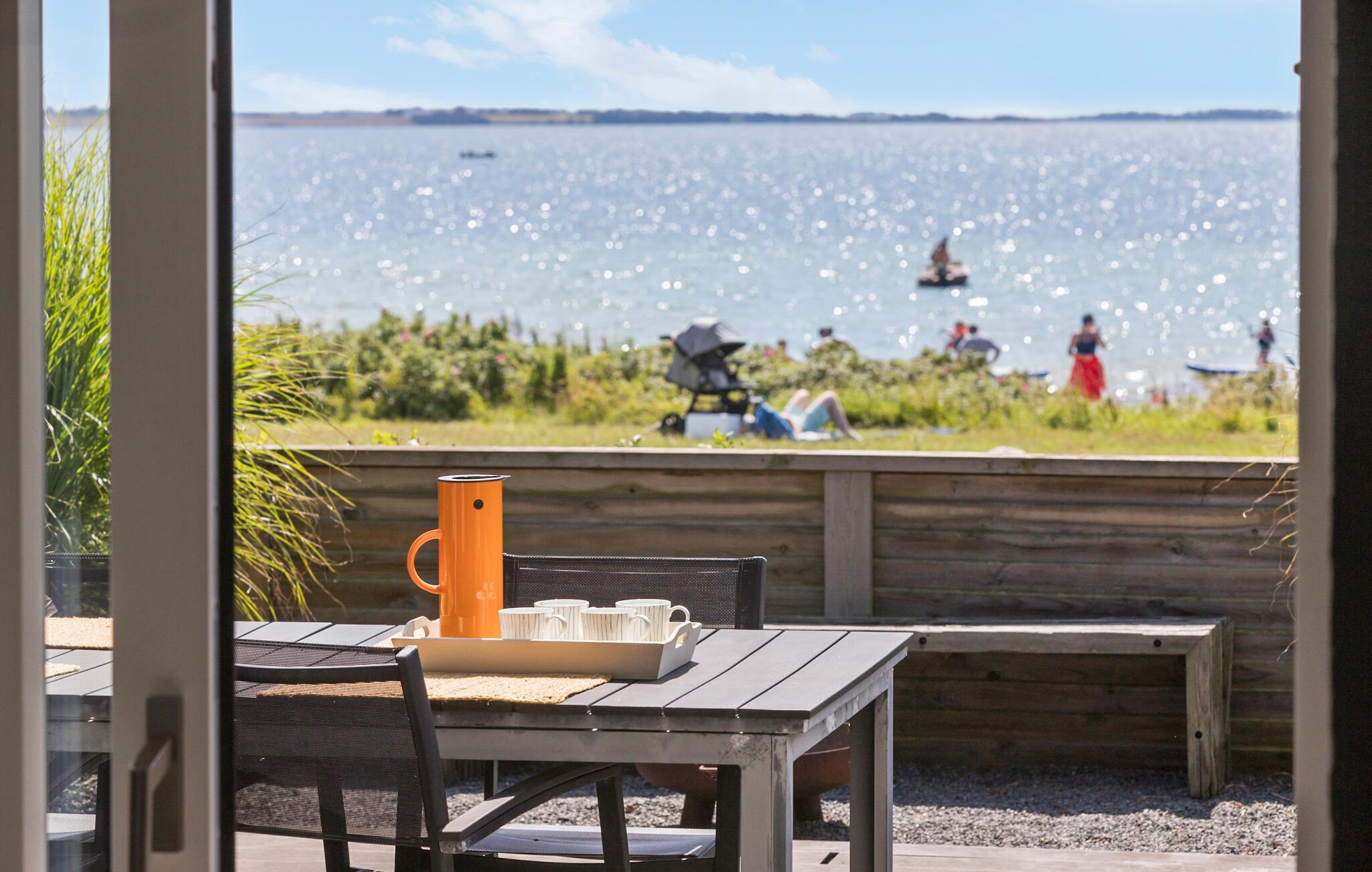 Skønt sommerhus ved Følle Strand med panoramaudsigt over Kalø Vig og moderne faciliteter for en afslappende ferie.