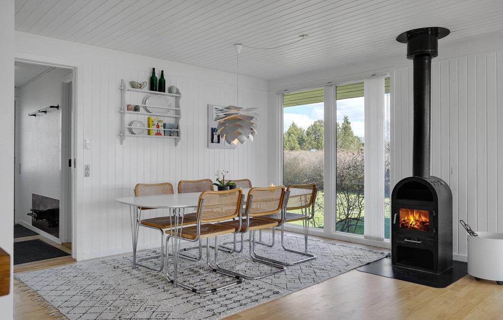 Sommerhuset er en god blanding af klassisk og moderne og har en skøn placering ved Følle Strand. Der er tre soveværelser, hvoraf de to har dobbeltsenge og det tredje har to enkeltsenge. Det betyder, at der er plads til 6 personer, og huset kan benyttes året rundt. I vinterhalvåret er det særligt hyggeligt med ilden, der buldrer i brændeovnen.