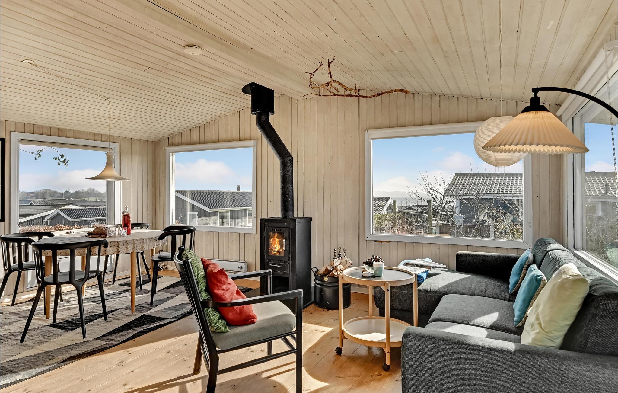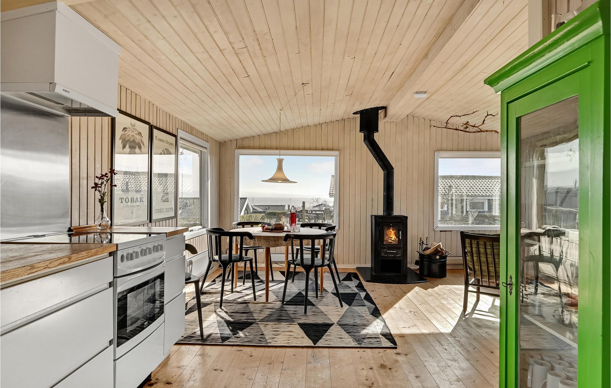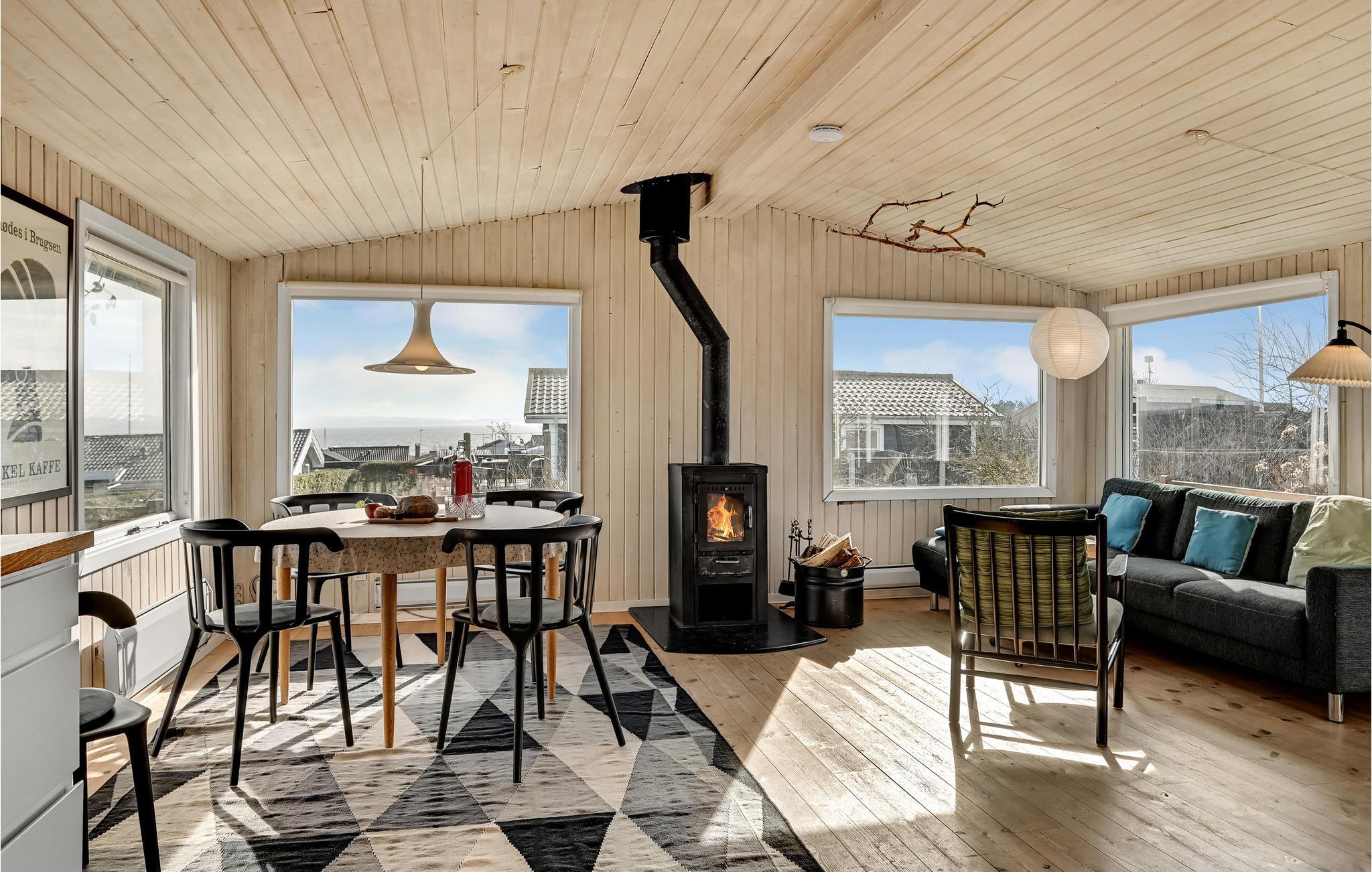 I kan slappe af med hele familien i husets lyse rum. Den hyggelige indretning med et skønt lysindfald sikrer en hyggelig atmosfære. Lav mad sammen med en vidunderlig udsigt udefra, nyd måltiderne ved spisebordet, hvor I også har en smuk udsigt til omgivelserne. Senere kan I føle jer godt tilpas i siddeområdet og lade blikket vandre over det omkringliggende grønne område. Efter en dejlig dag på stranden eller en udflugt, kan I tænde op i brændeovnen om aftenen og arrangere en selskabelig film- eller spilleaften.