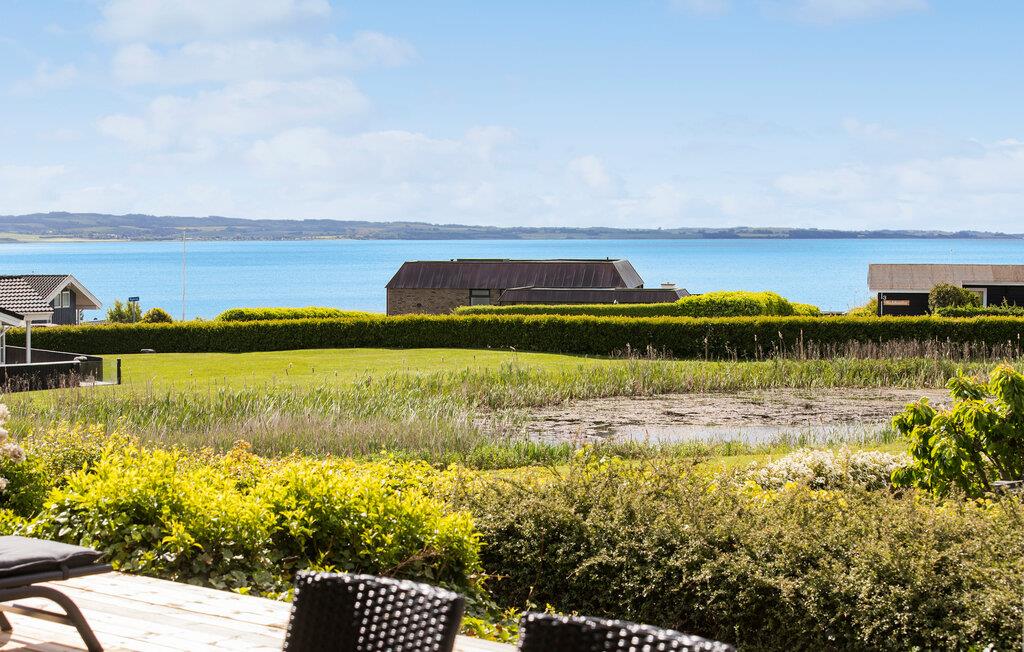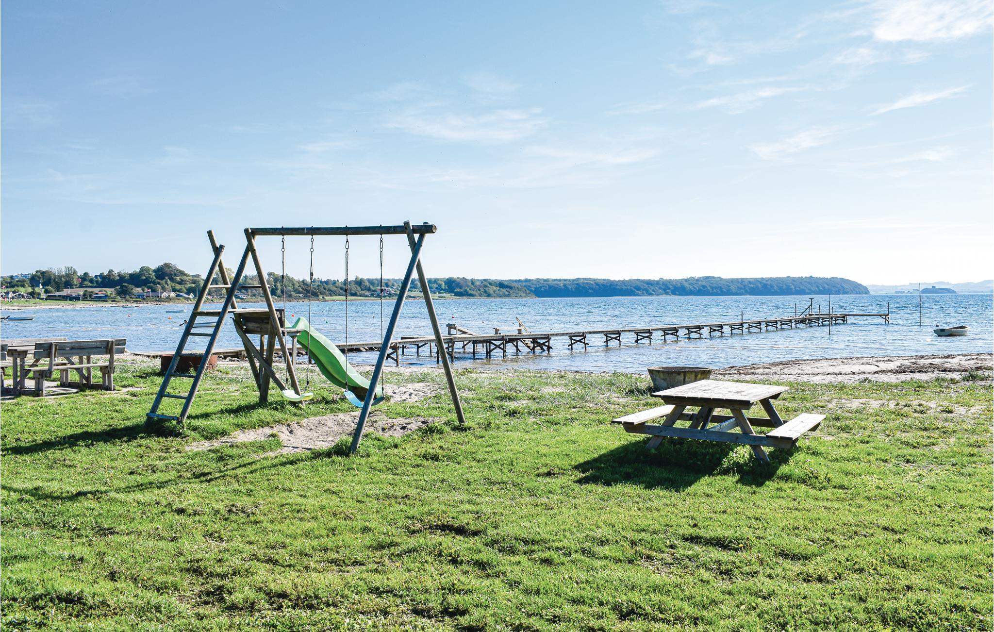 Gå udenfor, og tag plads på den rummelige træterrasse, der både tilbyder solrige og overdækkede områder. Nyd den frie udsigt over landskabet helt ud til bugten med ruinen af Kalø Slot i baggrunden. Hyg jer sammen i loungemøblerne, eller spis sammen ved terrassens store bord med plads til hele familien. Lad børnene lege i haven med gynger, mens I nyder roen og udsigten.