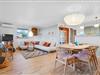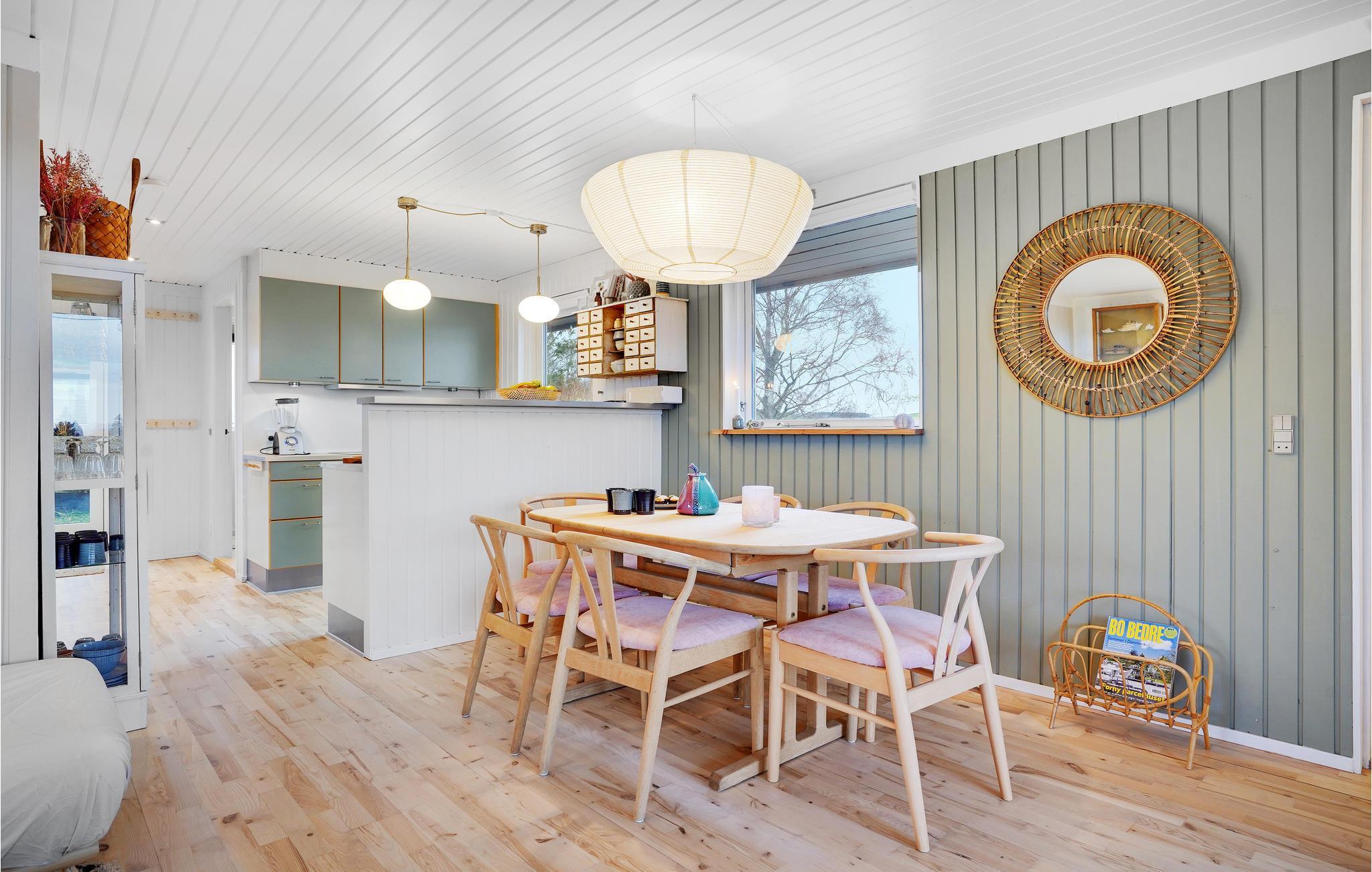 Dette indbydende feriehus tilbyder alt hvad du behøver for en vellykket ferie med familie eller venner. Inde kan du forvente et moderne og lyst hus med smukke detaljer og velvalgte dekorationer. Stuen med spiseplads og åbent køkken er mødestedet for alle husets gæster, og her kan I samles til lækre måltider eller tv-aftener.