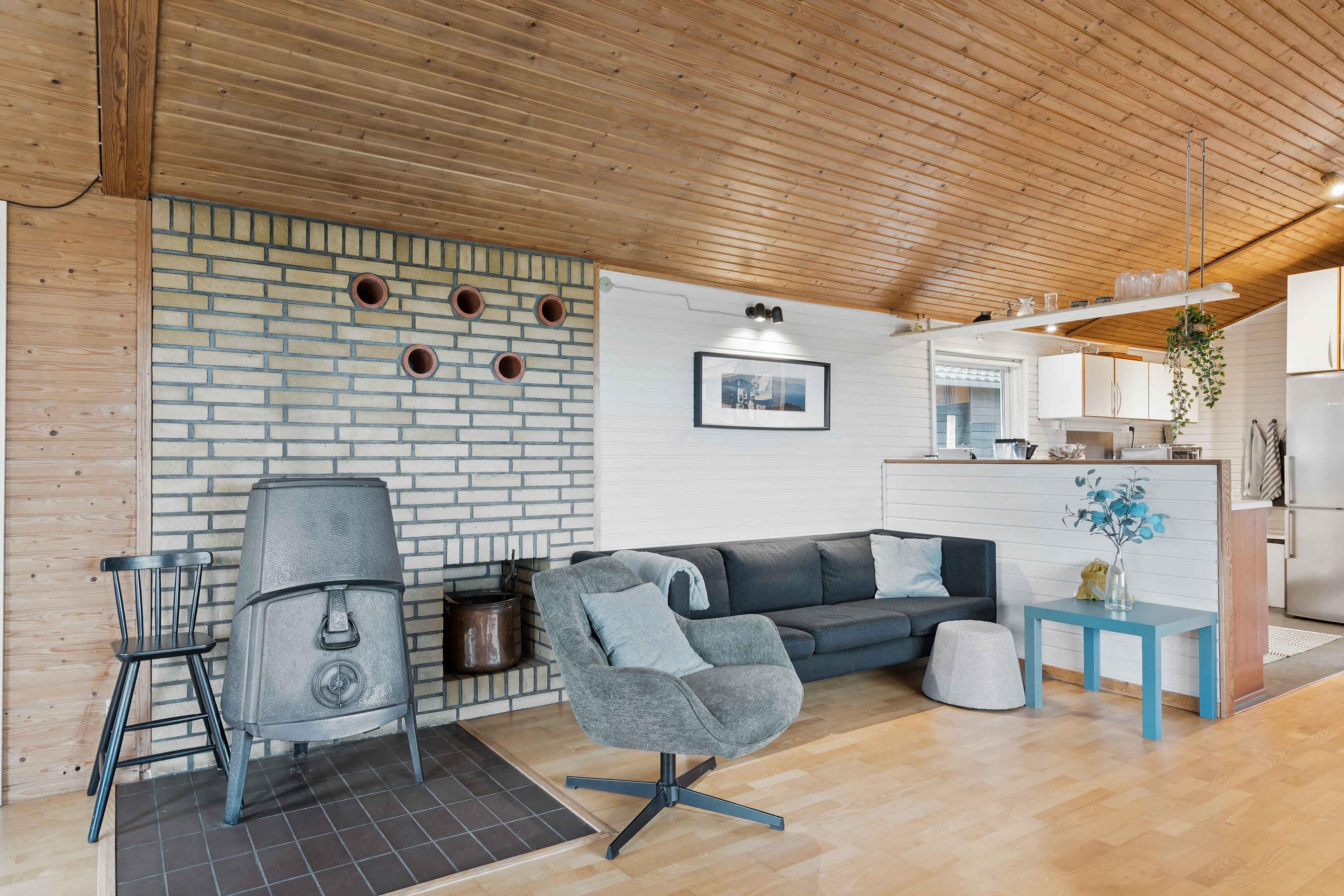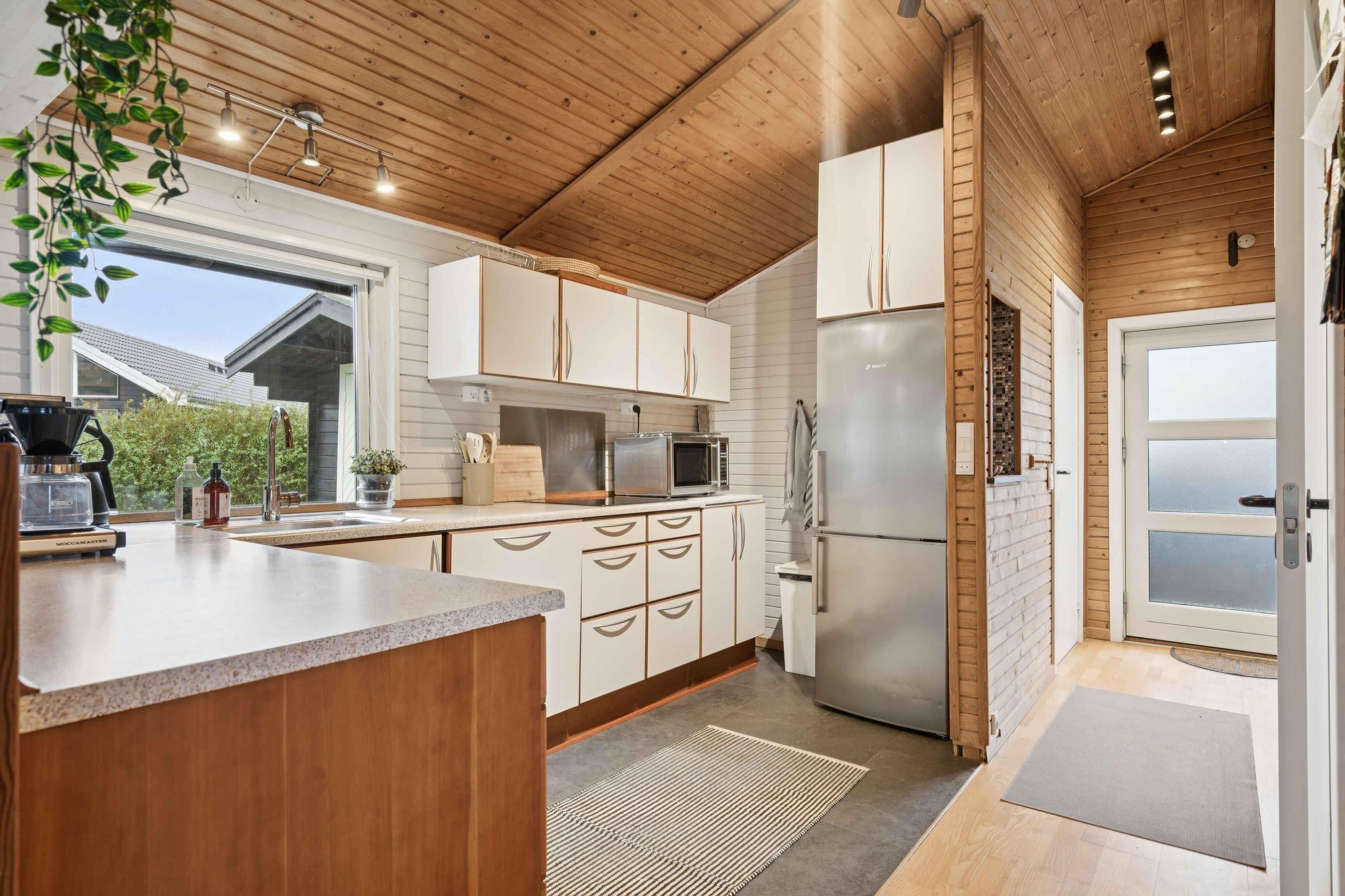 Hyggeligt sommerhus i Horne på Sydfyn med havudsigt Dette charmerende sorte bjælkehus med 8 sovepladser ligger i Horne på Sydfyn og byder på en stor sydvendt terrasse med panoramaudsigt over havet. Her kan du nyde roen, privatlivet og det åbne kig mod det sydfynske øhav. Terrassen indbyder til både afslapning og fællesskab med spisebord, liggestole og god plads til grillhygge. Den skaber en naturlig ramme om udendørslivet, mens udsigten til havet hele tiden er i centrum. Sommerhuset forener autentisk sommerhusstemning med moderne komfort og er ideelt til familier, der ønsker en ferie fyldt med ro, nærvær og smukke omgivelser i hjertet af Sydfyn. Samtidig er der rig mulighed for at udnytte naturen og området til både vandring, cykling og vandsport. Sommerhuset er godt indrettet med køkken og stue i åben forbindelse, så samvær og nærvær er i fokus. De store vinduespartier mod syd gør, at udsigten og havet kommer helt ind stuen. Der er masser af gamle originale detaljer fra huset blev bygget i 1968, og det gør at man mærker hyggen og roen på en særlig måde. Ønsker man lidt byliv og kultur er der kun 10 km til Faaborg, som er én af Danmarks ældste købstæder. Den byder på masser af indkøbsmuligheder, caféer, restauranter, kulturliv og en hyggelig havnefront. Herfra kan man fx tage færgen til både Lyø og Avernakø, hvor man kan opleve ølivet med den særlige stemning. Obs, udlejes ikke til erhversmæssigt brug.
