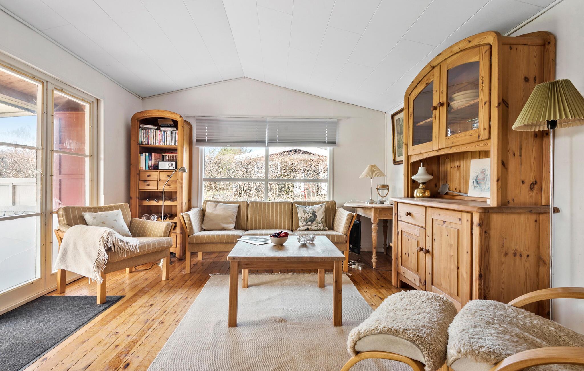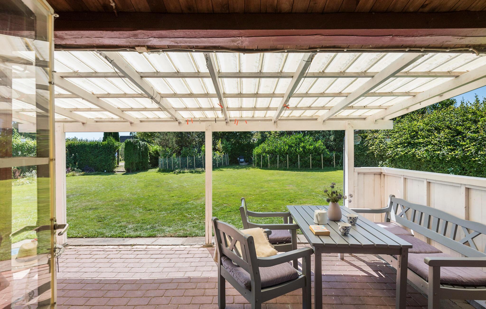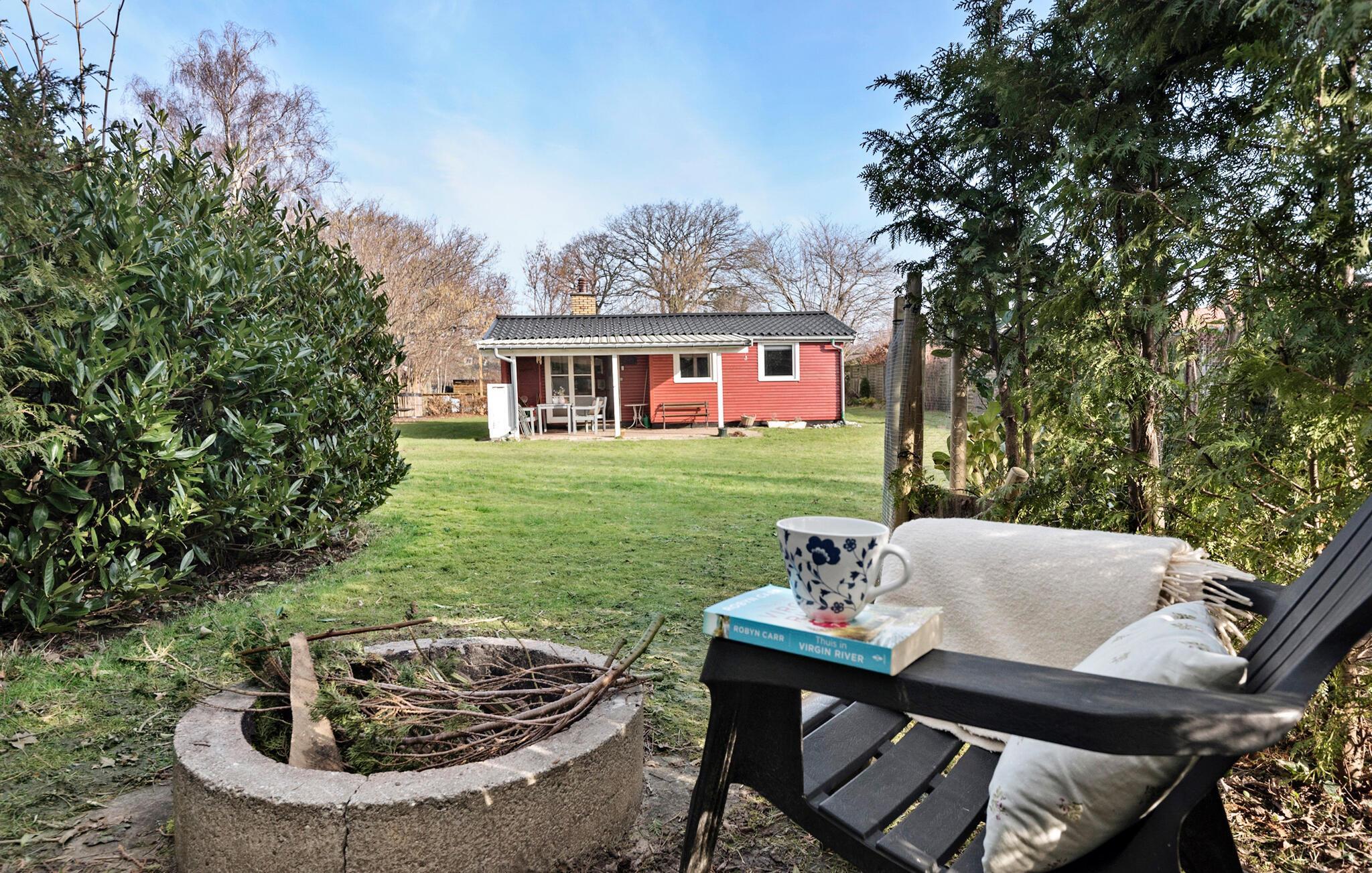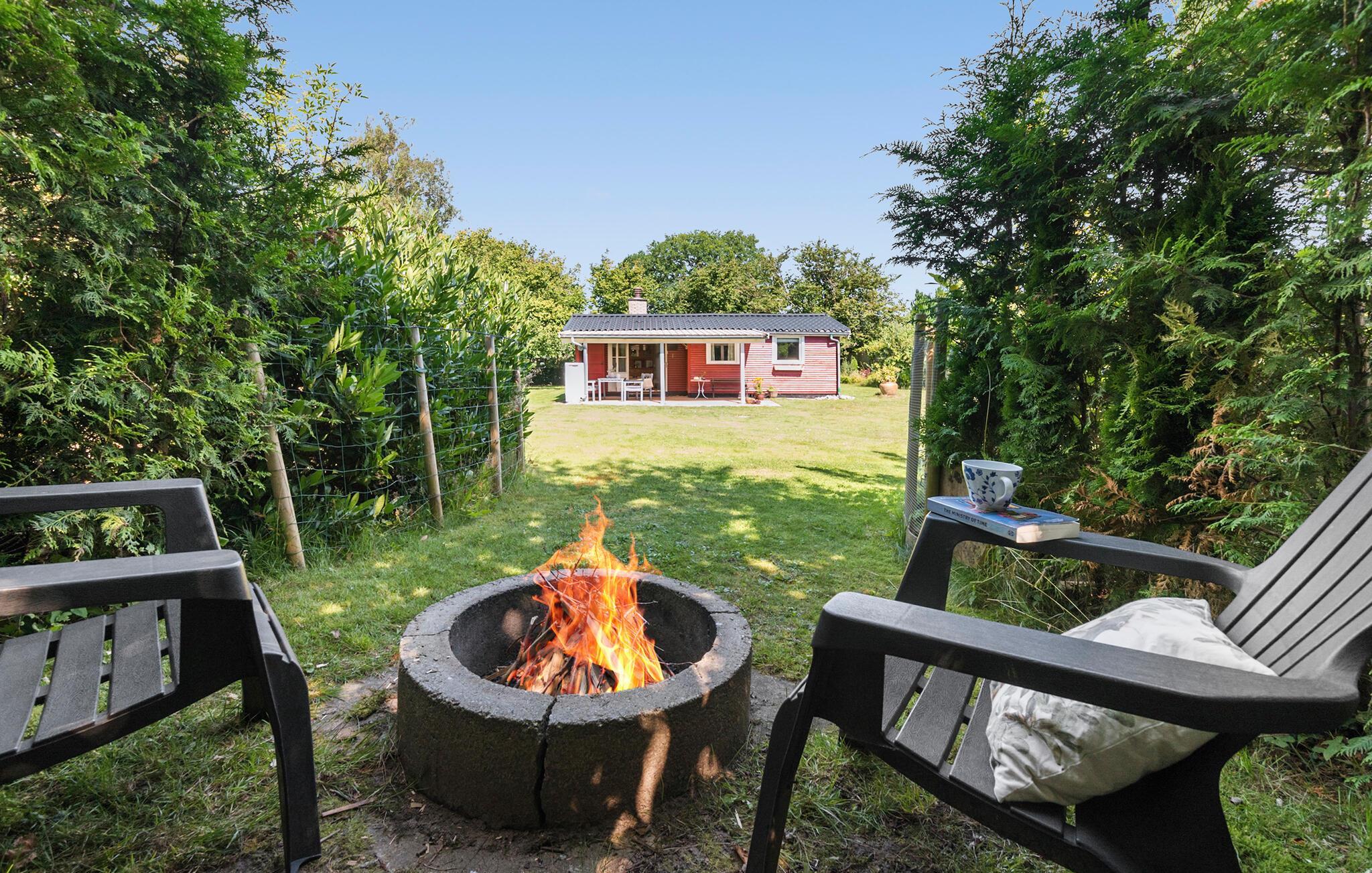 Udendørs byder haven på en overdækket terrasse med havemøbler og grill, perfekt til udendørs middage og hyggelige grillaftener. Bålpladsen er ideel til at riste skumfiduser og fortælle historier under stjernerne. Kun en kort gåtur fra huset finder I en skøn sandstrand, hvor I kan svømme, bygge sandslotte eller tage en afslappet gåtur langs vandet.