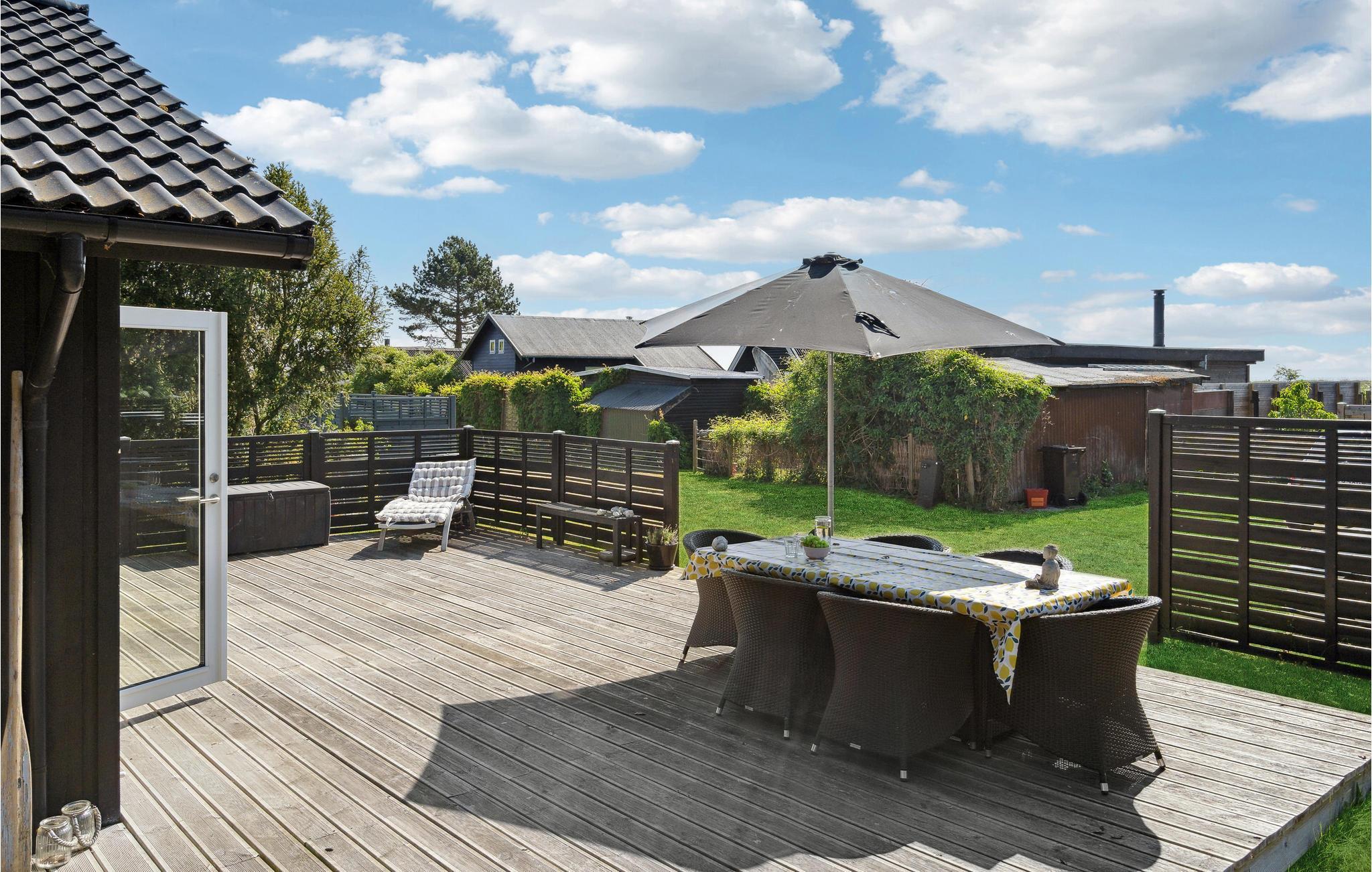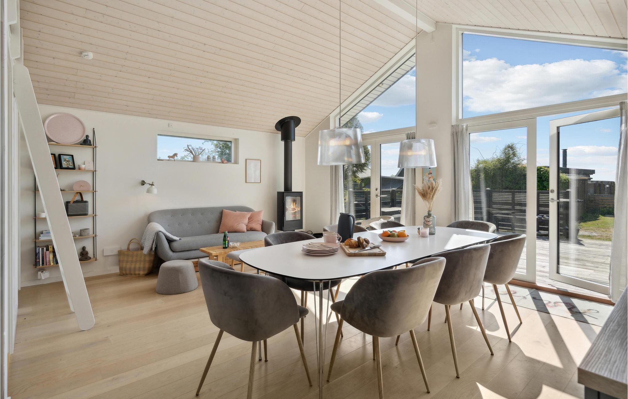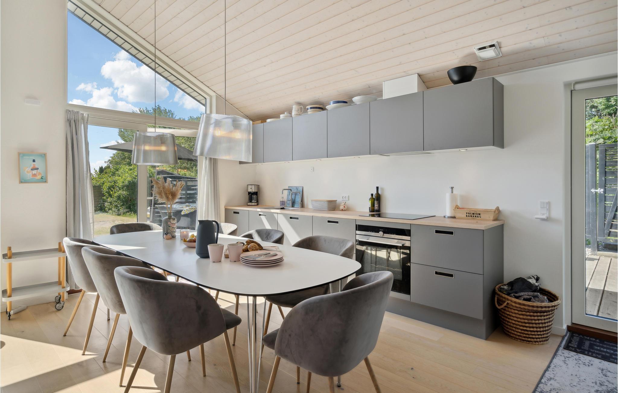 Forkæl jer selv med en afslappende pause fra den hektiske familiehverdag, og dette skønne feriehus er lige det rigtige sted! Træd ind i det smagfulde og lyse hus i moderne stil og med åben planløsning. Her vil I straks føle jer hjemme. Det åbne plan med store vinduer giver lys og luft og tilbyder alt, hvad I behøver for at eksperimentere i køkkenet, spille brætspil og lave puslespil, lege med biler på gulvet og slappe af med en god bog på sofaen. Om morgenen kan I gå ud på terrassen med en dampende kop kaffe og mærke roen og de første solstråler. Planlæg jeres vandretur på Feddet under parasollen og spil strandtennis med jeres børn i haven. Senere kan I tage til den nærliggende sandstrand og bygge sandslotte, kaste med frisbee og forfriske jer i vandet.