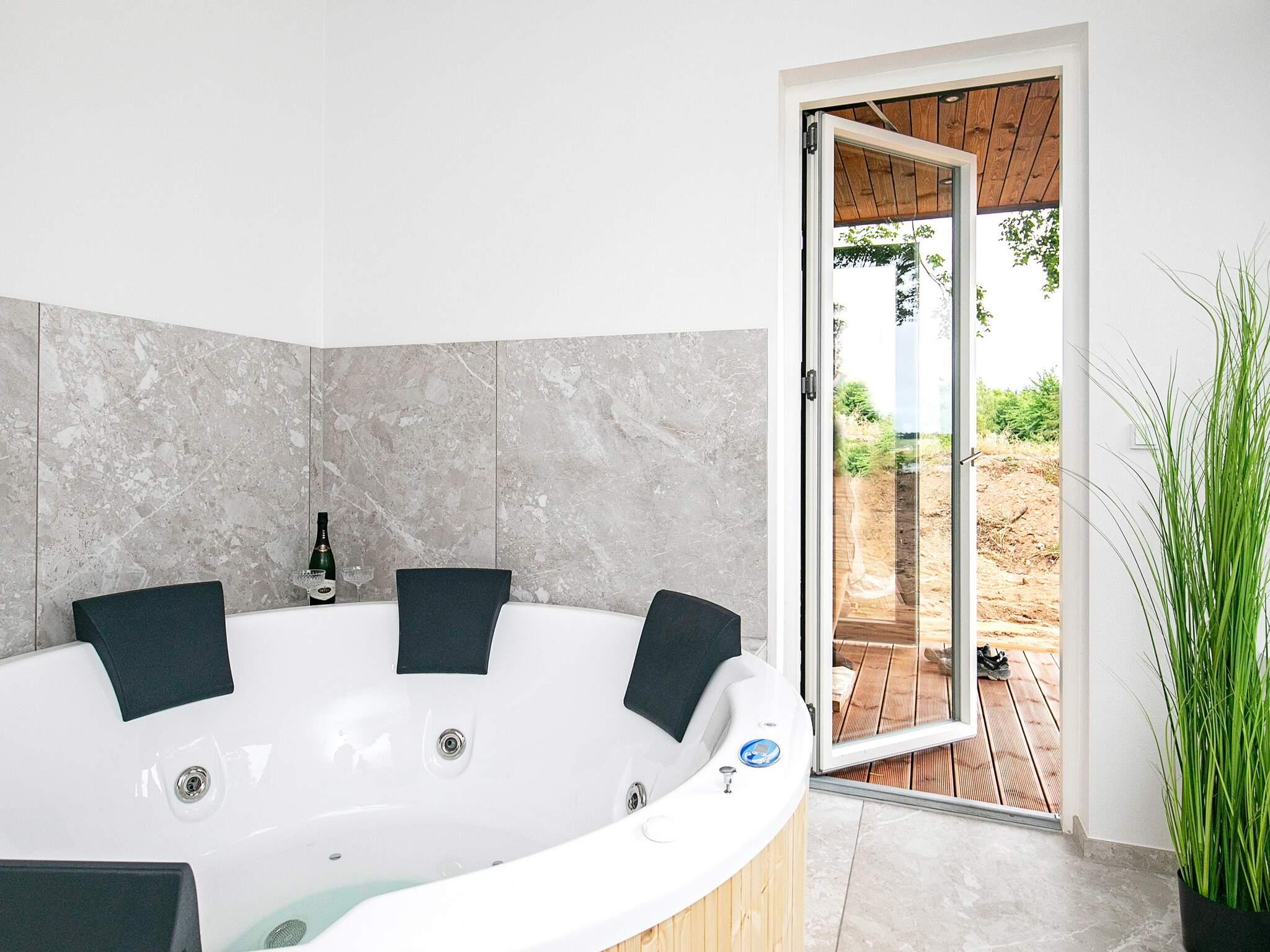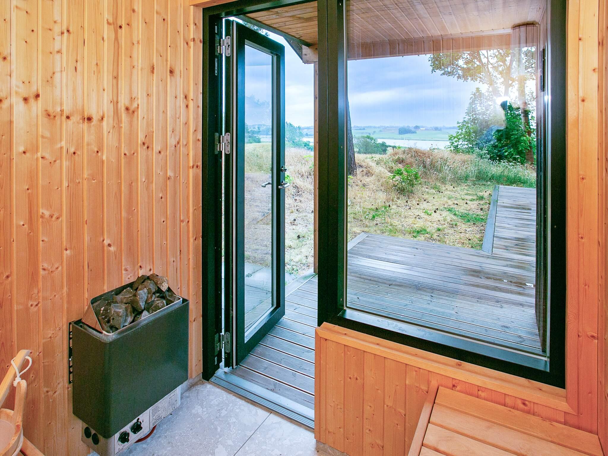 Der er to badeværelser, hvoraf det ene har et stort spabad med plads til 5 personer samt skøn sauna med et stor udsigtsvindue med udsigt til vandet. Der er vaskemaskine.