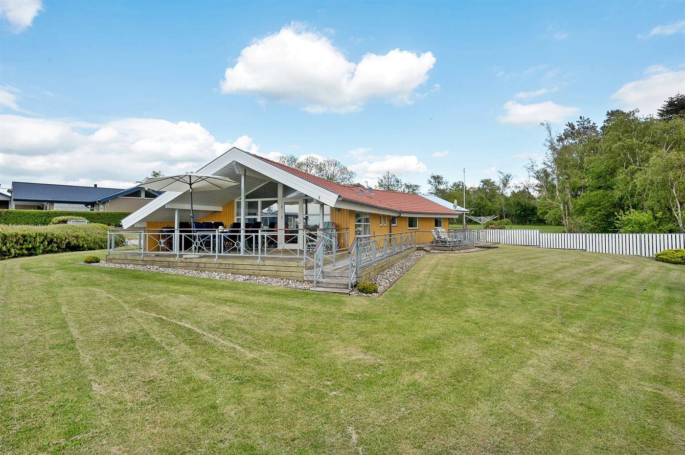 Ferieboligen er beliggende på en 900 m² stor havegrund. Der er 400 m til havet. Der er en badebro i nærheden. Nærmeste forretning er beliggende i en afstand af 3000 m. Til ferieboligen hører 60 m² terrasseareal. Desuden er der 40 m² overdækket terrasse. Gynge. Sandkasse. Fodboldmål. Grill til rådighed. Der er carport til rådighed. Parkering ved ferieboligen.
