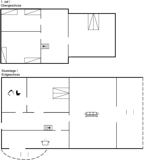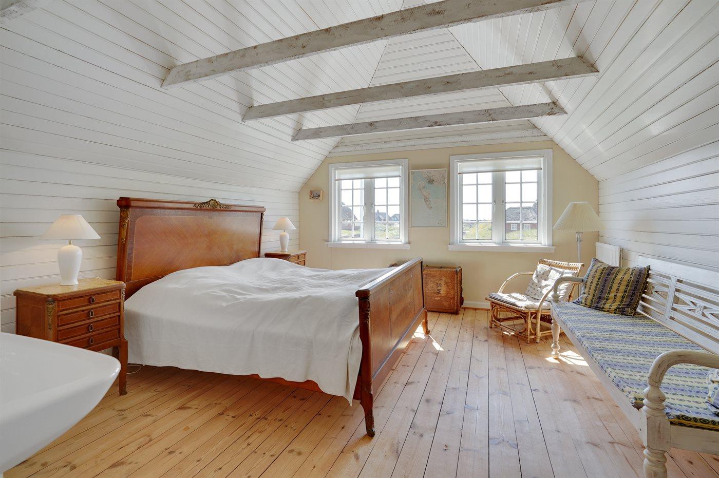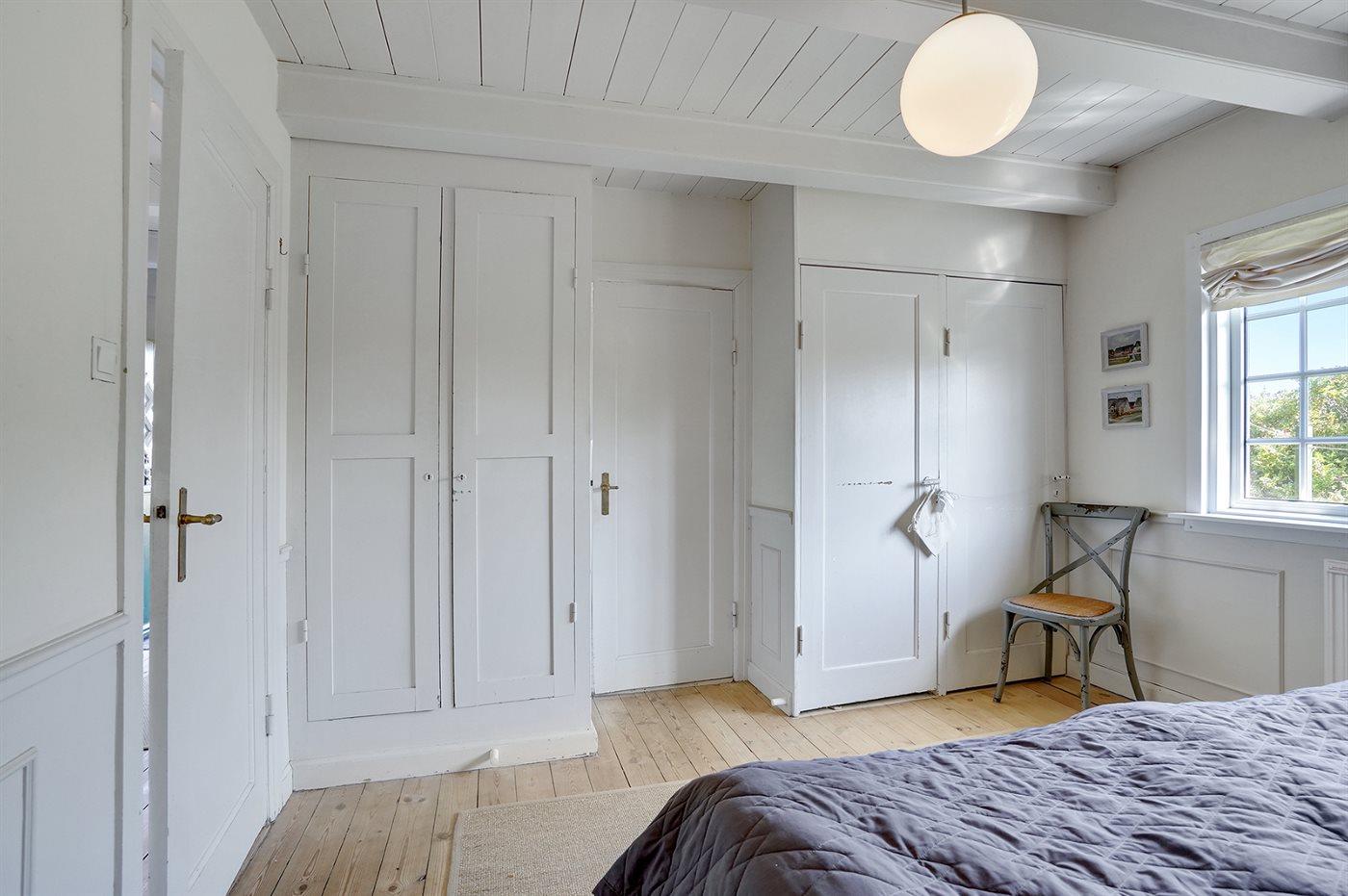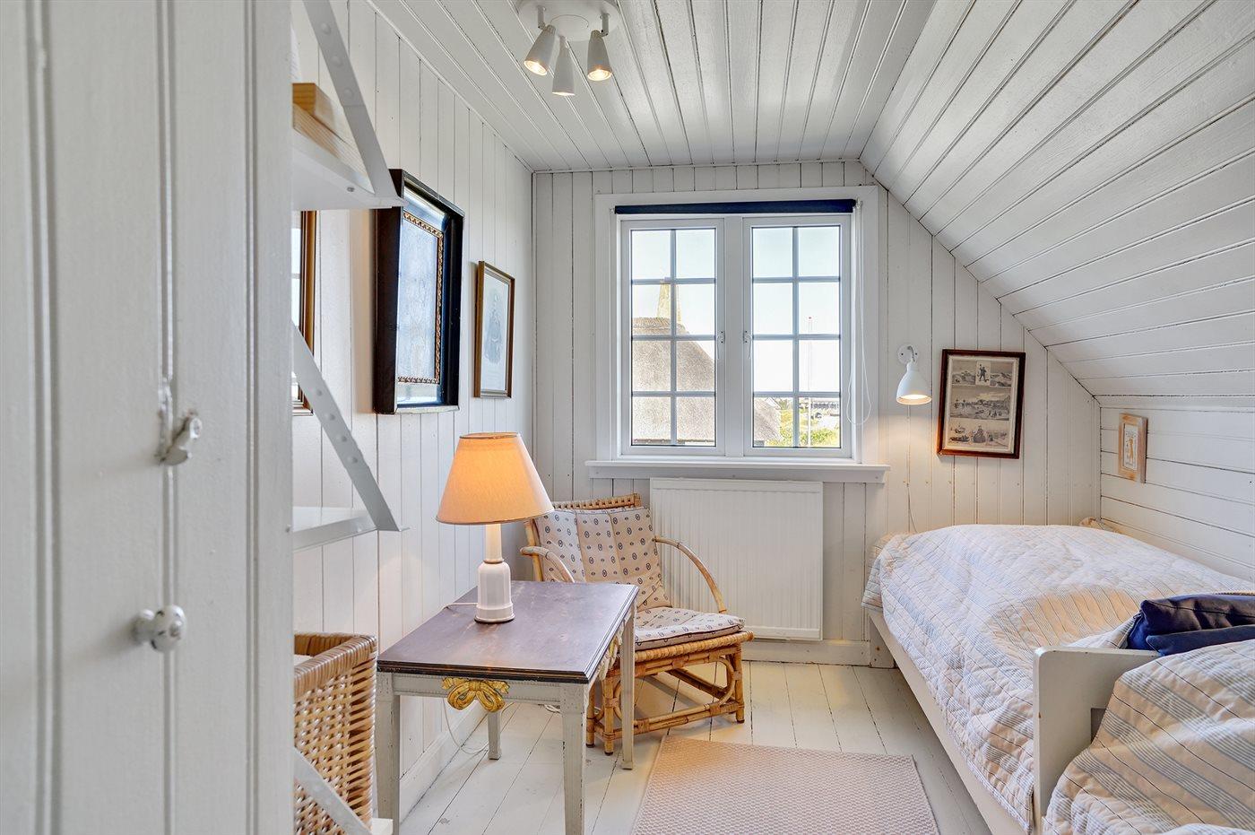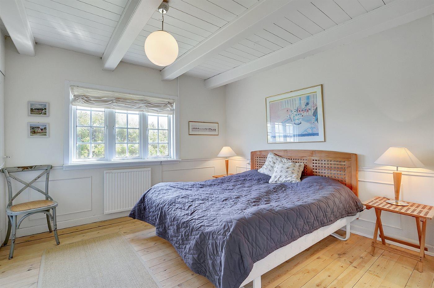 Der er i alt 3 soveværelser. Sovepladserne fordeler sig på: 4 sovepladser i dobbeltsenge. 2 sovepladser i enkeltsenge. Derudover er der 1 stk. barneseng.