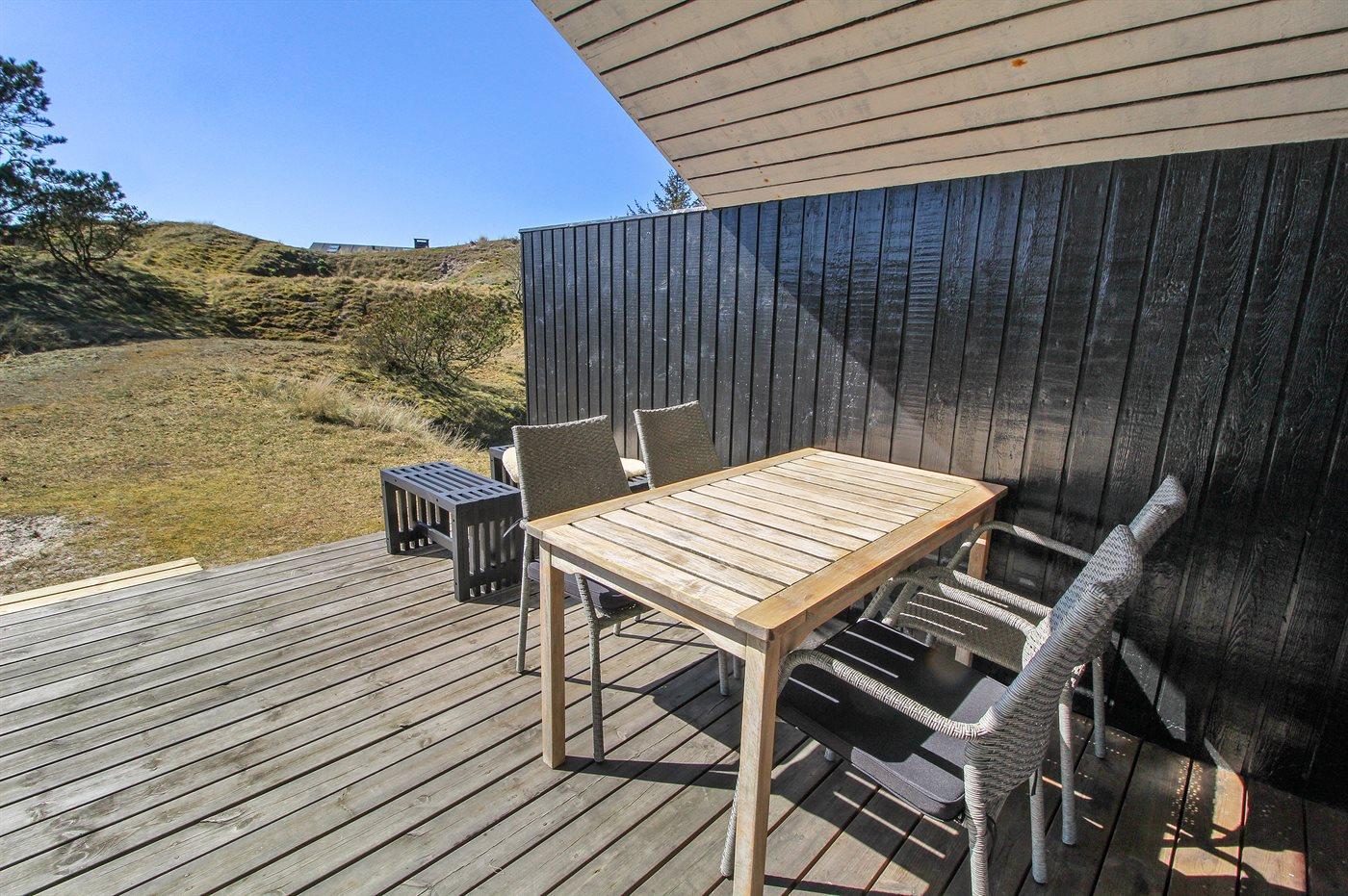 Ferieboligen er beliggende på en 2523 m² stor klitgrund. Der er 2000 m til havet. Der er 900 m til Vadehavet. Nærmeste forretning er beliggende i en afstand af 400 m. Der er en golfbane i en afstand af 1500 m. Til ferieboligen hører 60 m² terrasseareal. Desuden er der 10 m² overdækket terrasse. Heraf i alt 15 m² lukket terrasse. Der er redskabsrum. Parkering ved ferieboligen.
