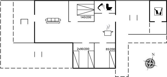 Der er i alt 3 soveværelser. Sovepladserne fordeler sig på: 2 sovepladser i dobbeltseng. 3 sovepladser i enkeltsenge.