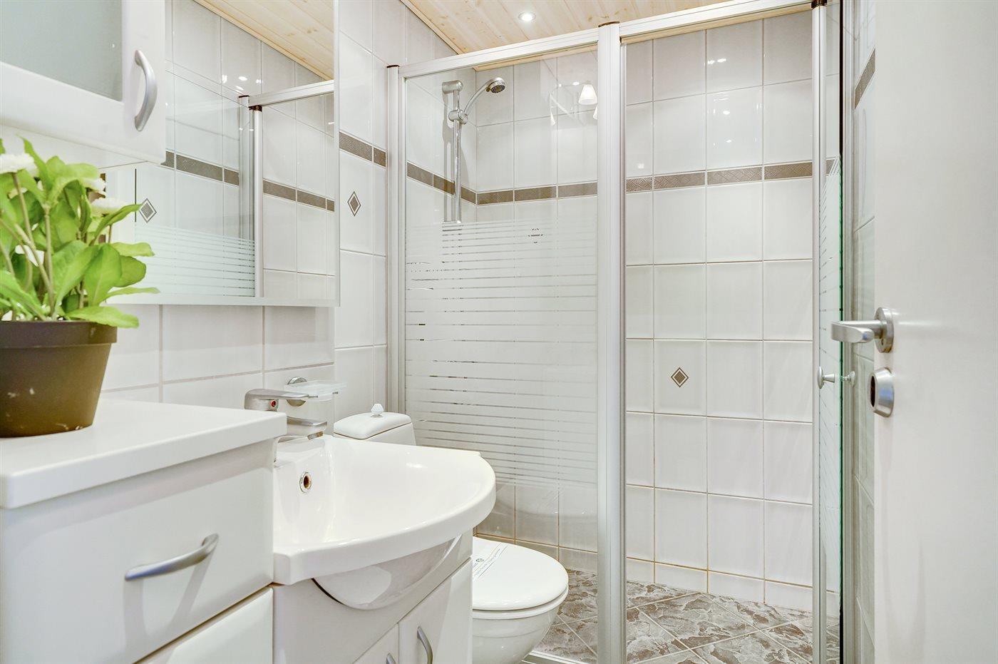 Der er 1 badeværelse med bruseniche og 1 toilet.. Der er gulvvarme på 1 badeværelse.