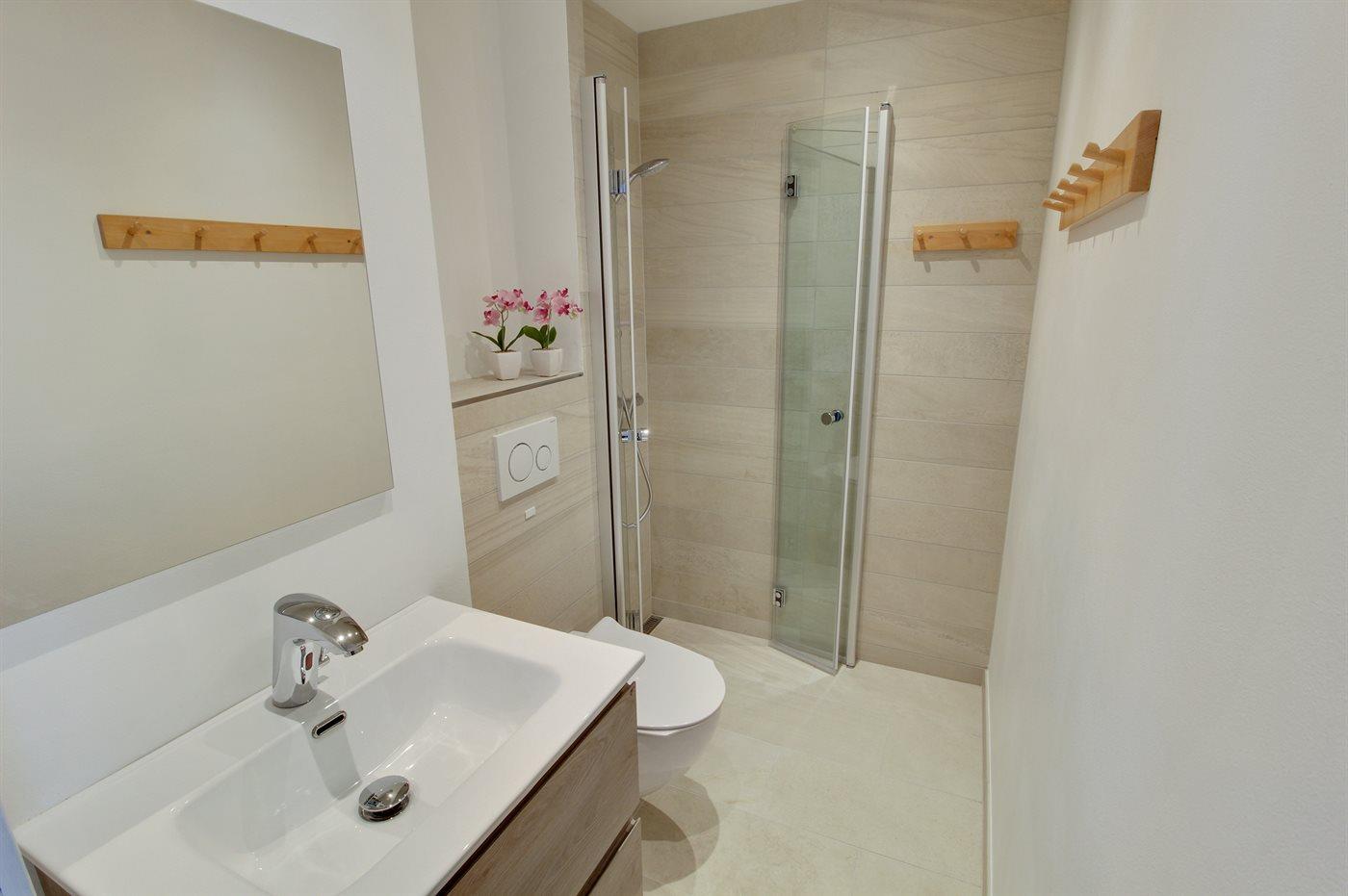 Der er 1 badeværelse med bruseniche og 1 toilet.