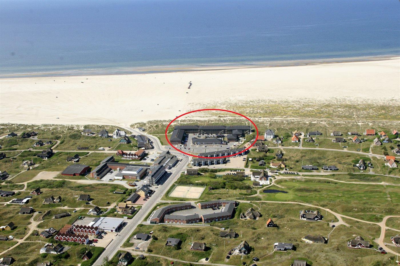 Ferielejlighed beliggende på 2. sal. Dejlig altan mod vest med direkte havudsigt. Fællesfaciliteter: Udendørs pool, som er opvarmet med solvarme, indendørs pool samt børnepool, sauna, vaskerum med tørretumbler og strygemulighed, gratis internetadgang,aktivitetsrum med bl.a bordtennis, legerum, air-hockey. Dejlige udendørsarealer med grillarealer, borde-bænke, legeplads og petanquebane.