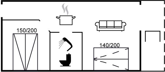 Der er i alt 1 soveværelse. Sovepladserne fordeler sig på: 2 sovepladser i dobbeltseng.