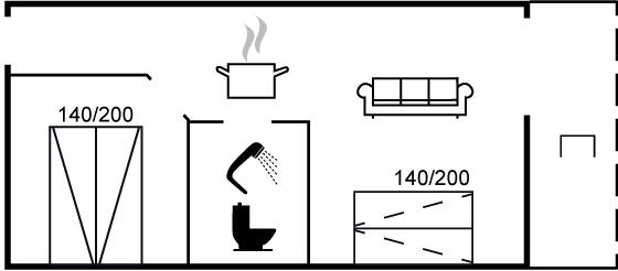 Der er i alt 1 soveværelse. Sovepladserne fordeler sig på: 2 sovepladser i dobbeltseng. 2 sovepladser i sovesofa (dobbelt).