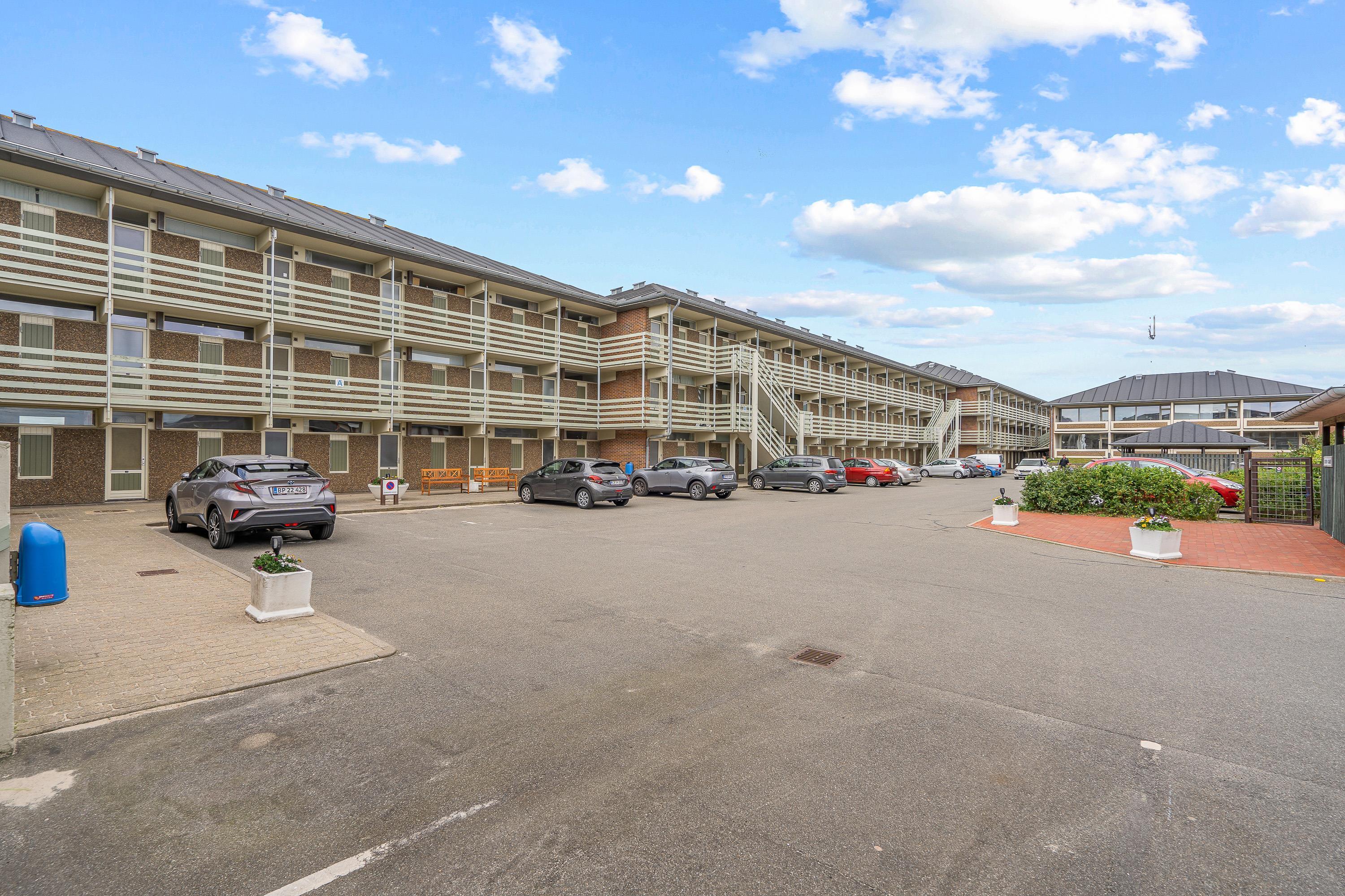 Der forefindes en rampe bag Blok B, for kørestolsbrugere og gangbesværede.