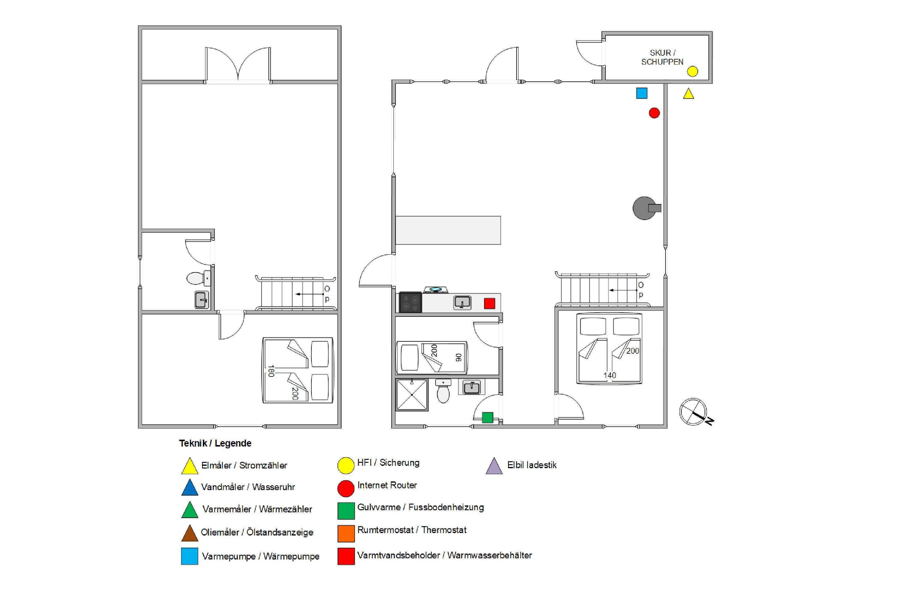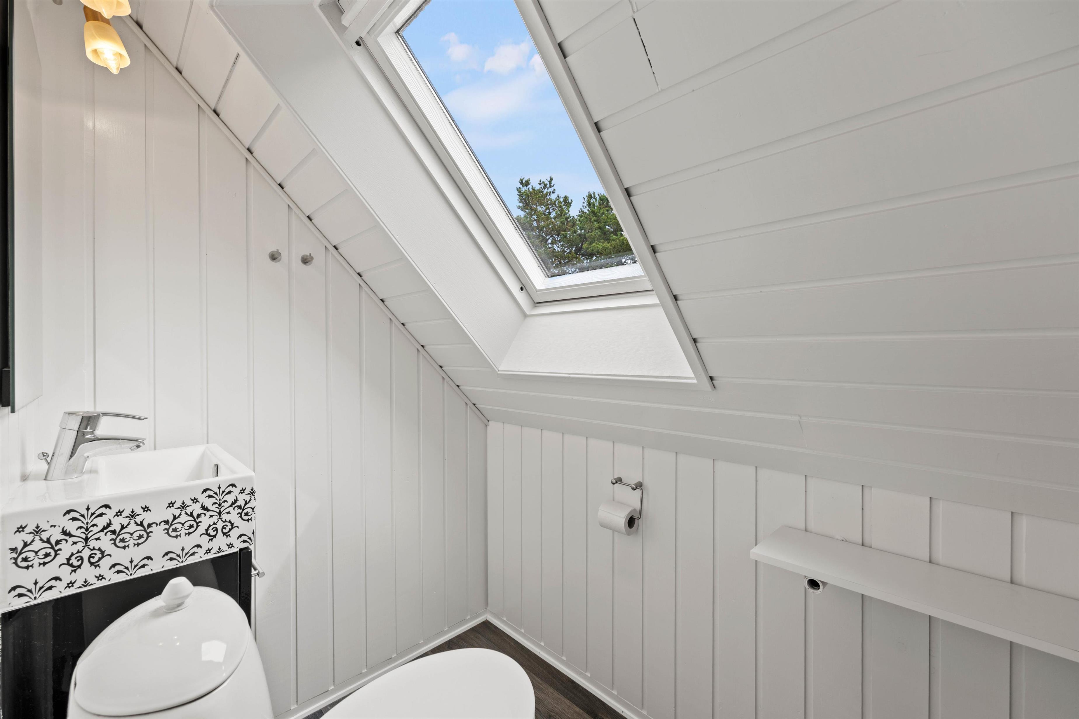 Planløsningen er praktisk, og i stueplan har I et badeværelse med gulvvarme, mens der på 1. salen er et gæstetoilet. Som et ekstra plus er der en vaskemaskine i sommerhuset.