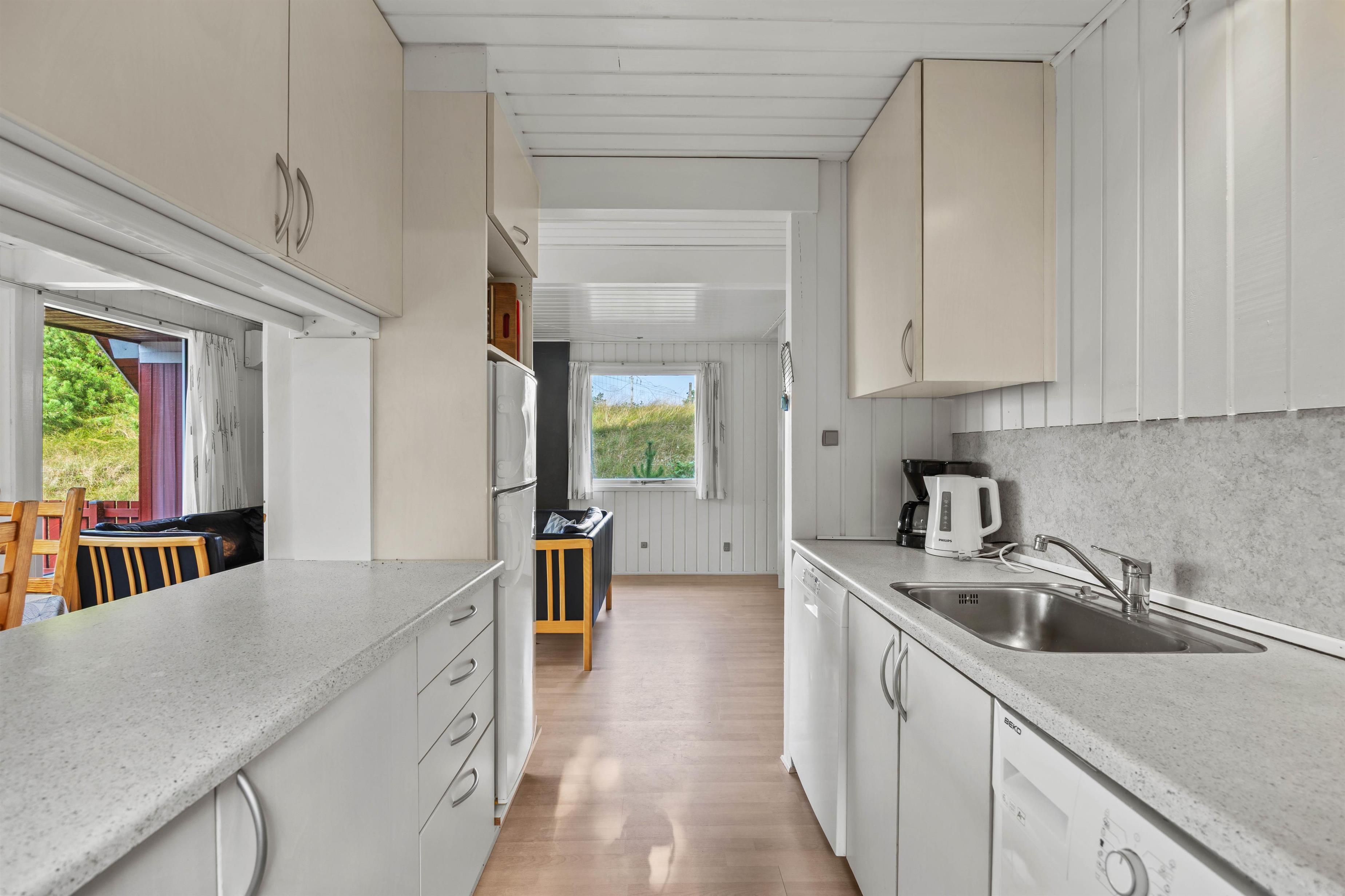Sommerhusets 92 m² er fordelt på 2 etager, og i løbet af ferien er der derfor rig mulighed for hyggelige stunder sammen med familien, men også til at trække sig tilbage efter en oplevelsesrig feriedag. I stueetagen finder I alrummet, hvor stue, spiseplads og køkken ligger samlet i ét. Sæt jer godt til rette i sofaen og nyd varmen fra brændeovnen, når I har nydt et godt måltid mad. Opvaskemaskinen klarer jeres opvask, så der er god tid til en hyggelig stund, inden sengen kalder.