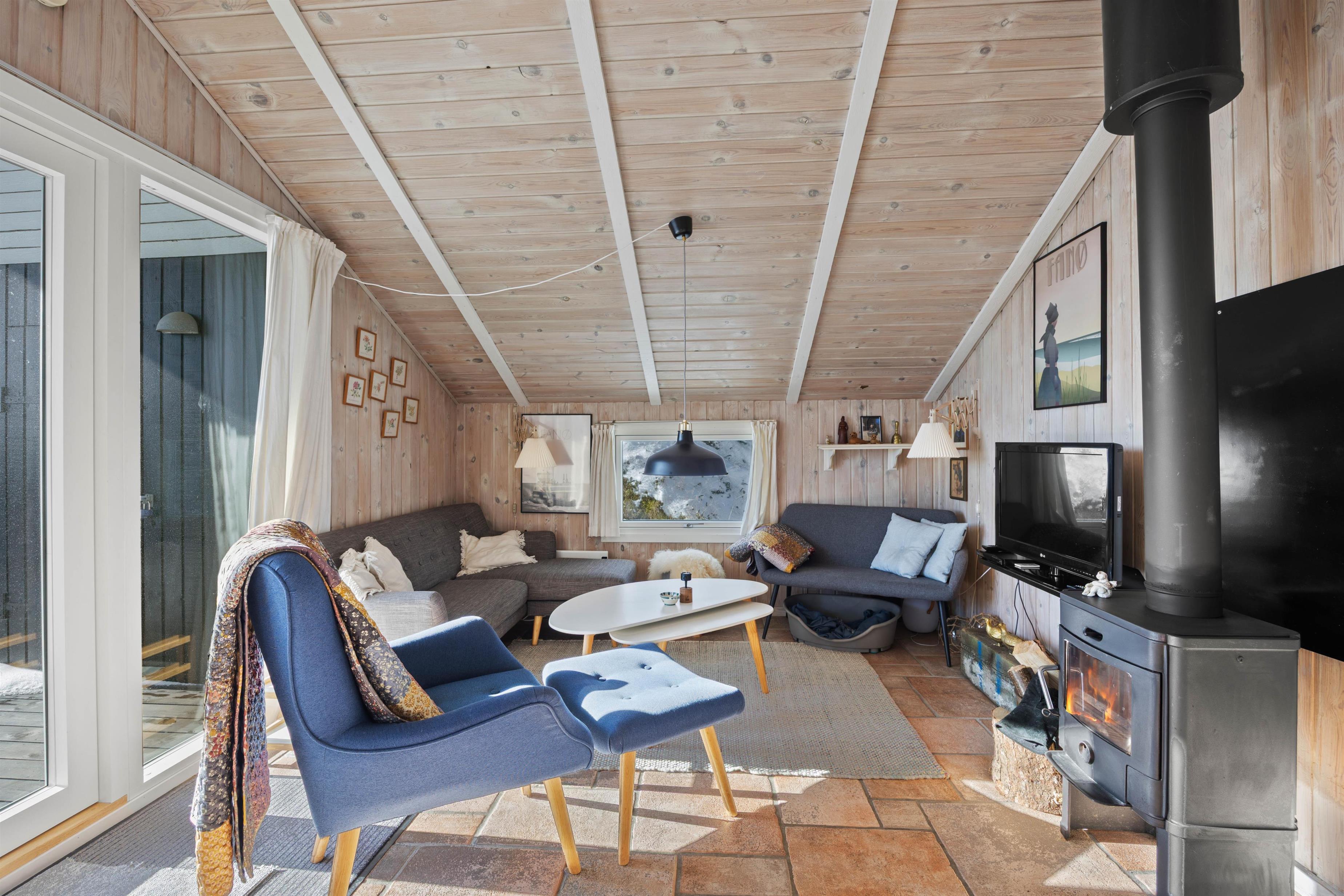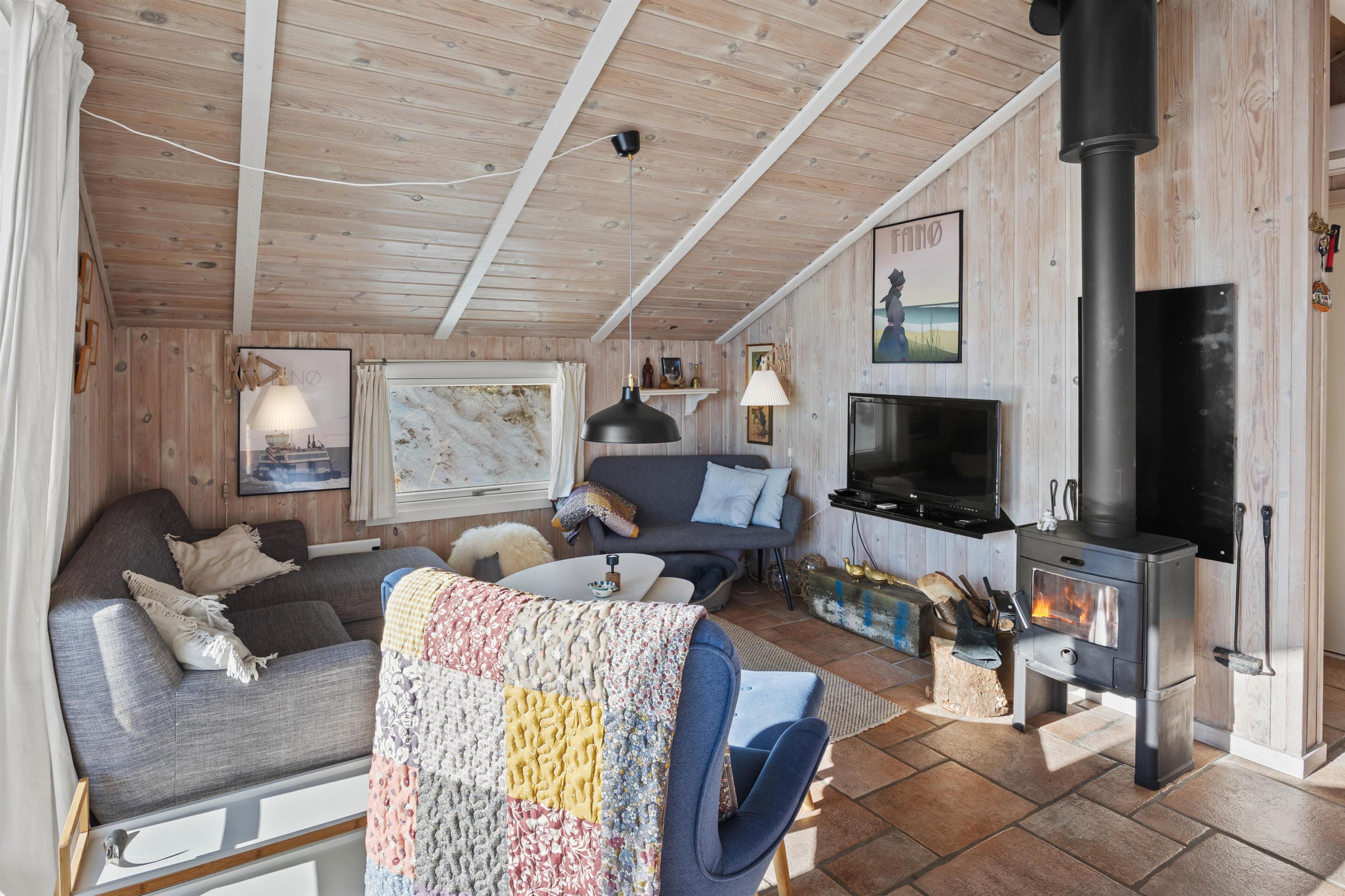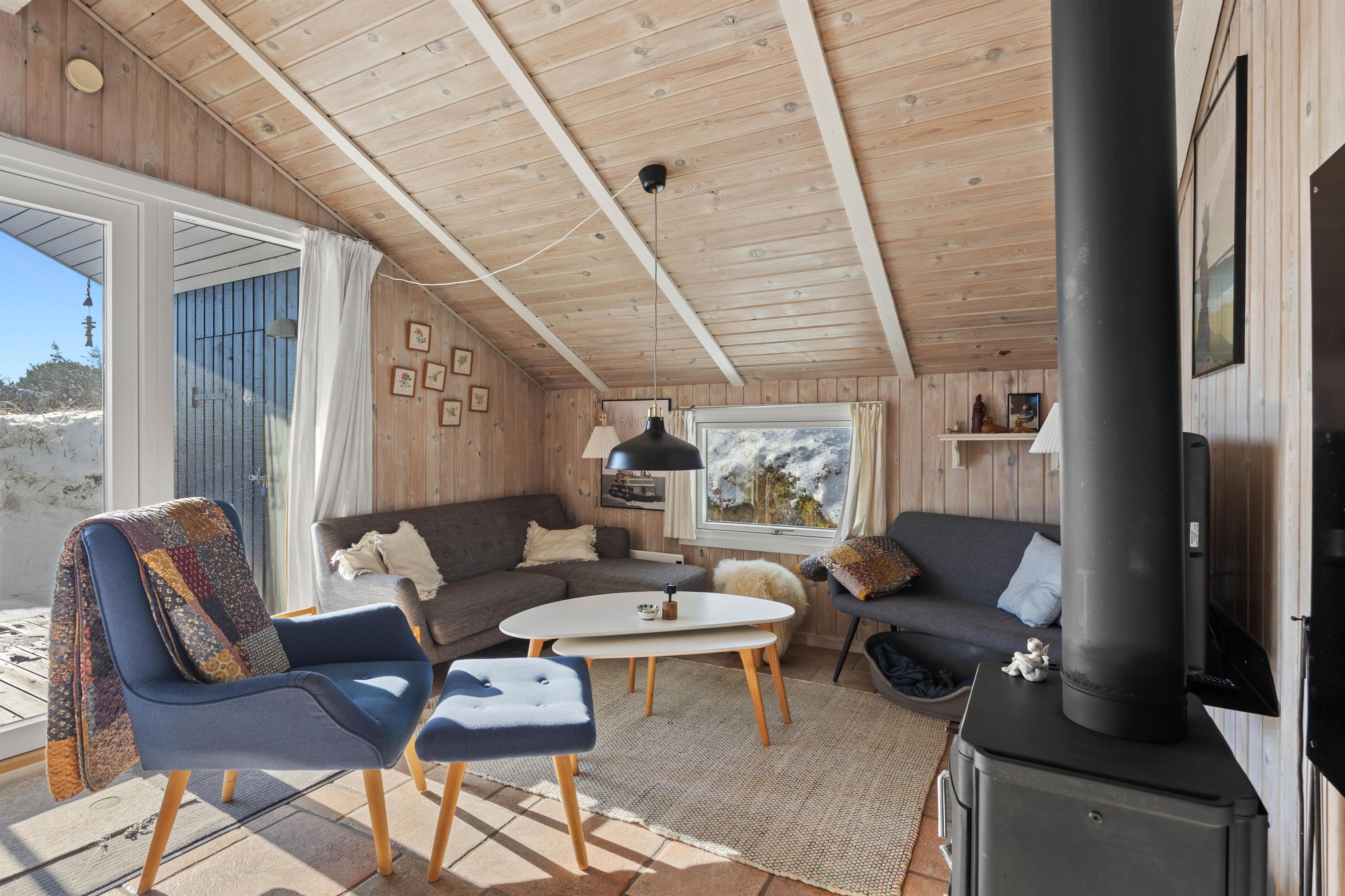 Når vinden blæser hen over øen, er det skønt at samles i stuen, hvor brændeovnen spreder varme og hygge, og her kan I læne jer tilbage i sofaen, fordybe jer i en god bog eller spille et spil sammen efter en dag ved stranden eller ude i klitterne.