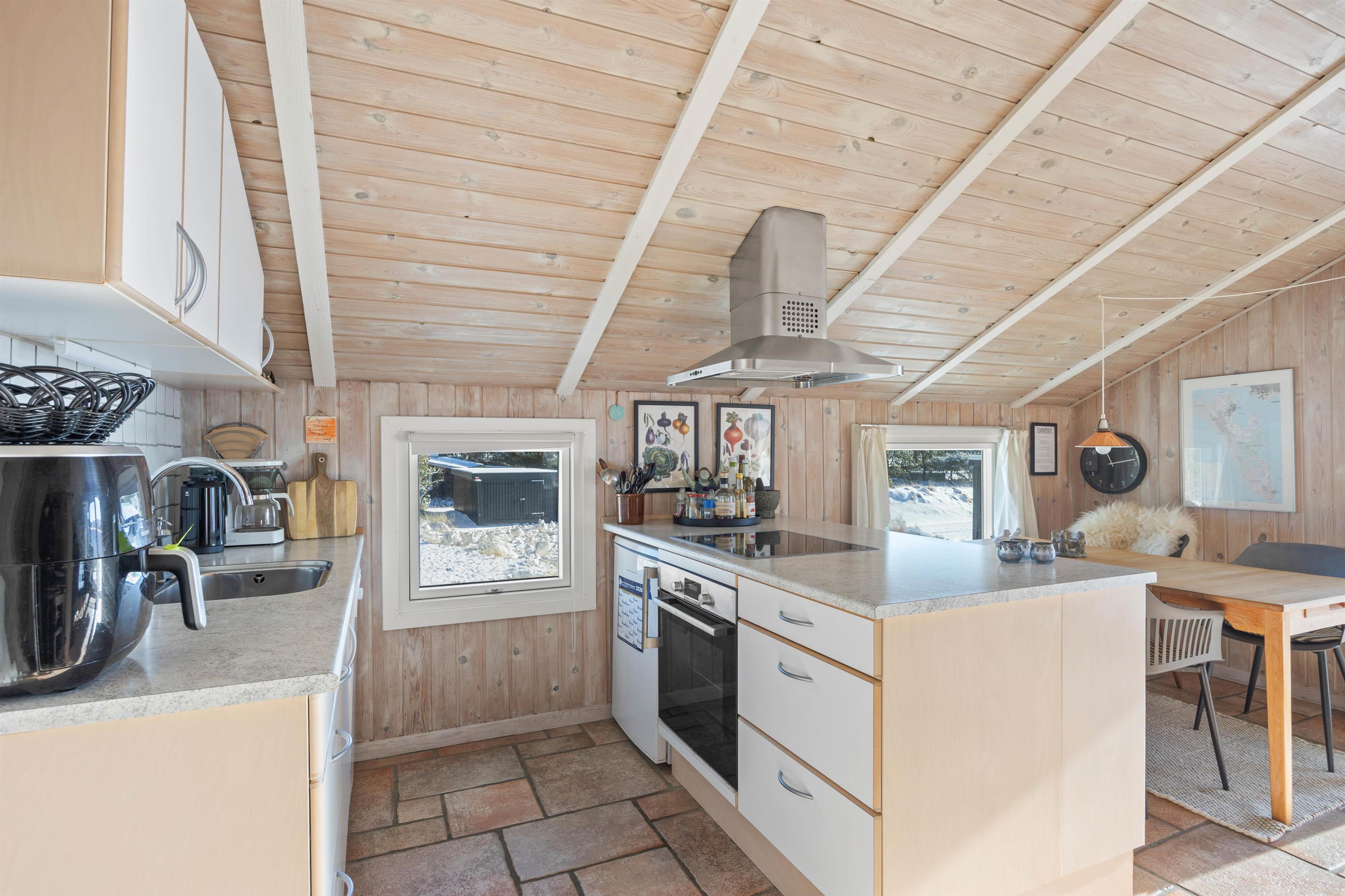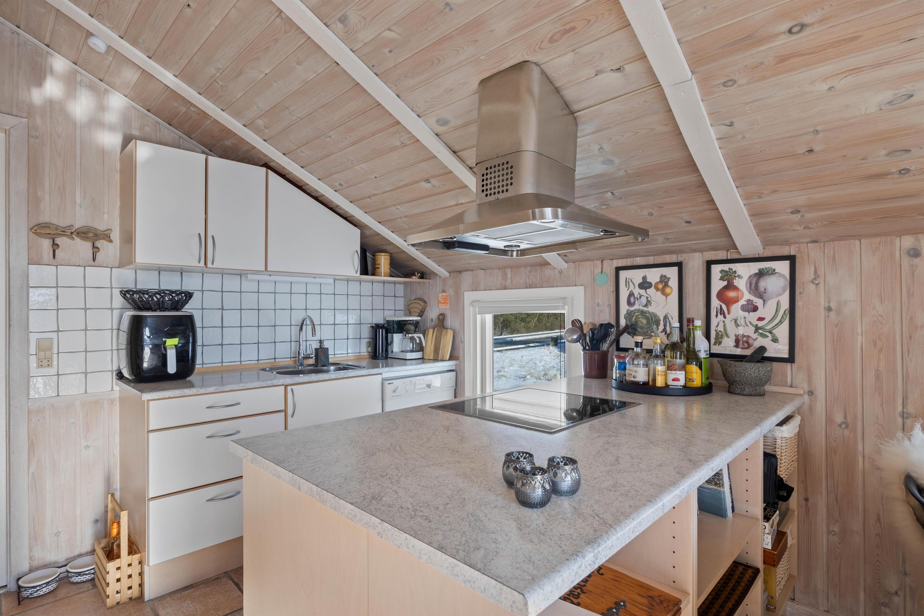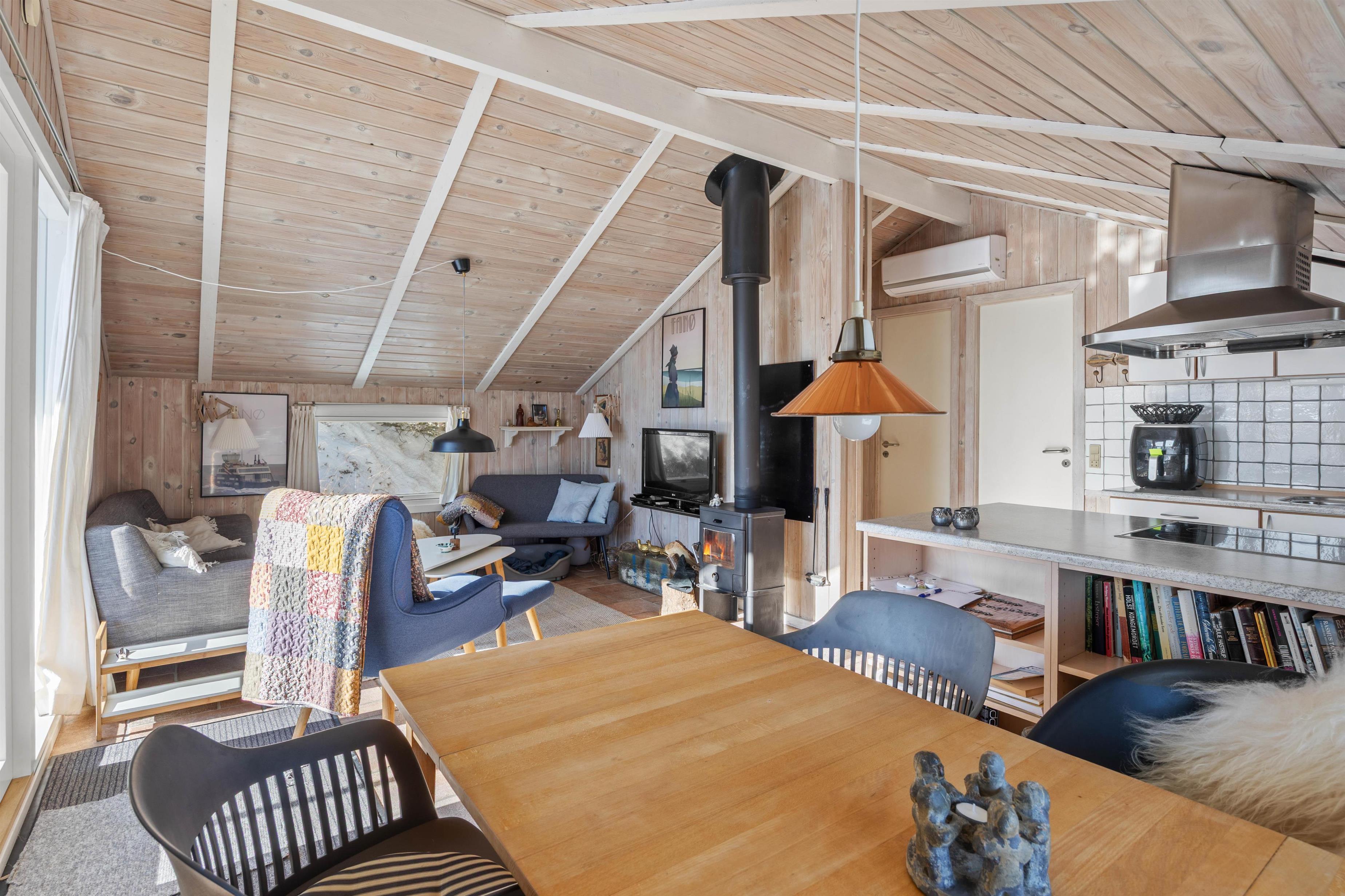 Køkkenet er praktisk indrettet og udstyret med blandt andet opvaskemaskine og separat fryser, så det er nemt at klare både morgenmad og aftensmad. Den energivenlige varmepumpe sikrer et behageligt indeklima året rundt og bidrager til en komfortabel og afslappende ferie – uanset årstid.