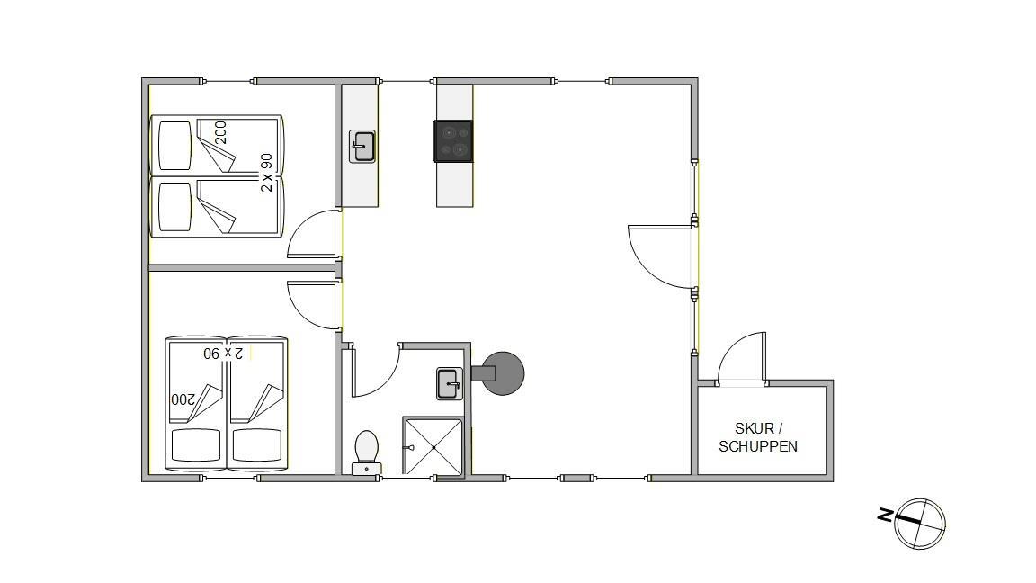 Huset rummer 2 soveværelser – et med dobbeltseng og et med to enkeltsenge – som giver gode og rolige rammer for en behagelig nattesøvn. Her er plads til både familie og venner, og indretningen er enkel og hyggelig.