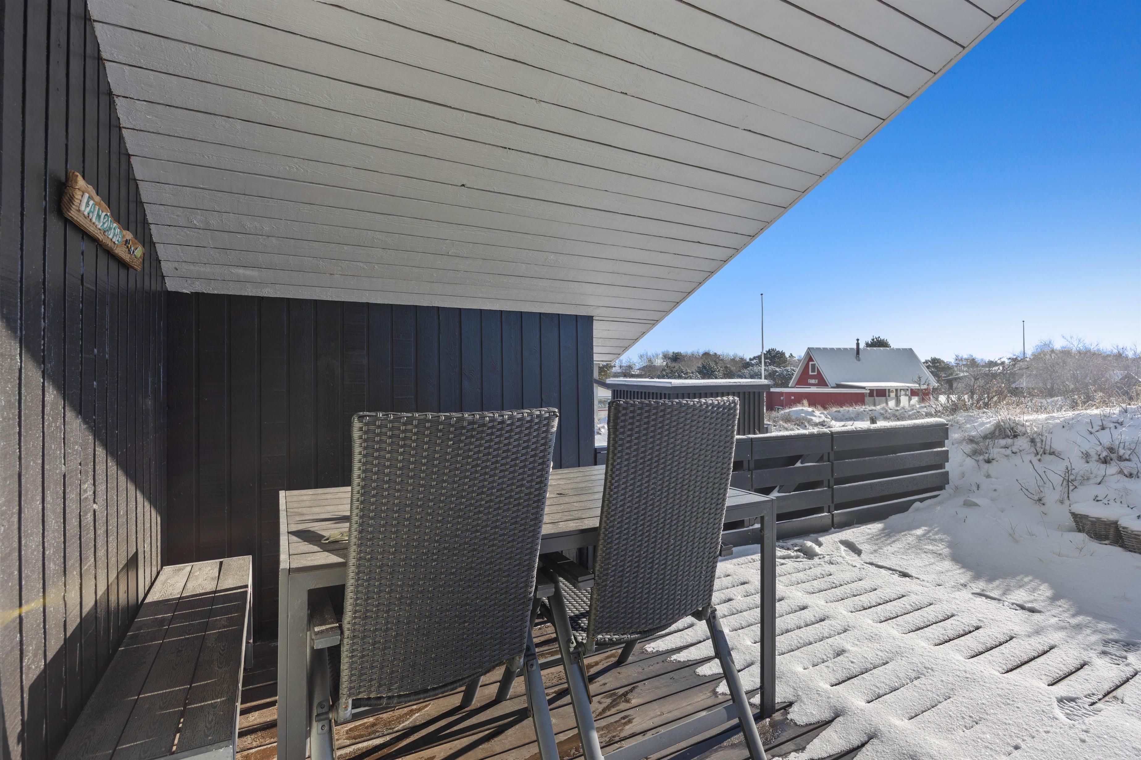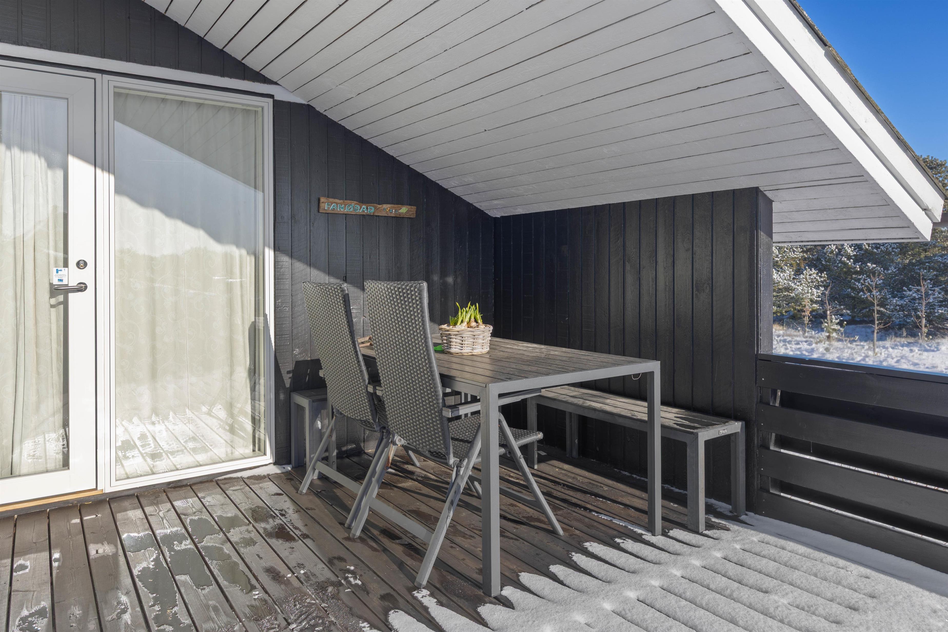 Den åbne og delvist overdækkede terrasse giver skønne muligheder for at nyde ferien udendørs fra morgen til aften. Start dagen med morgenmad i solen, find læ når vinden tager til, eller træk ind under overdækningen ved en let byge.