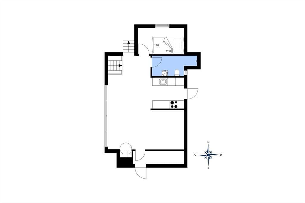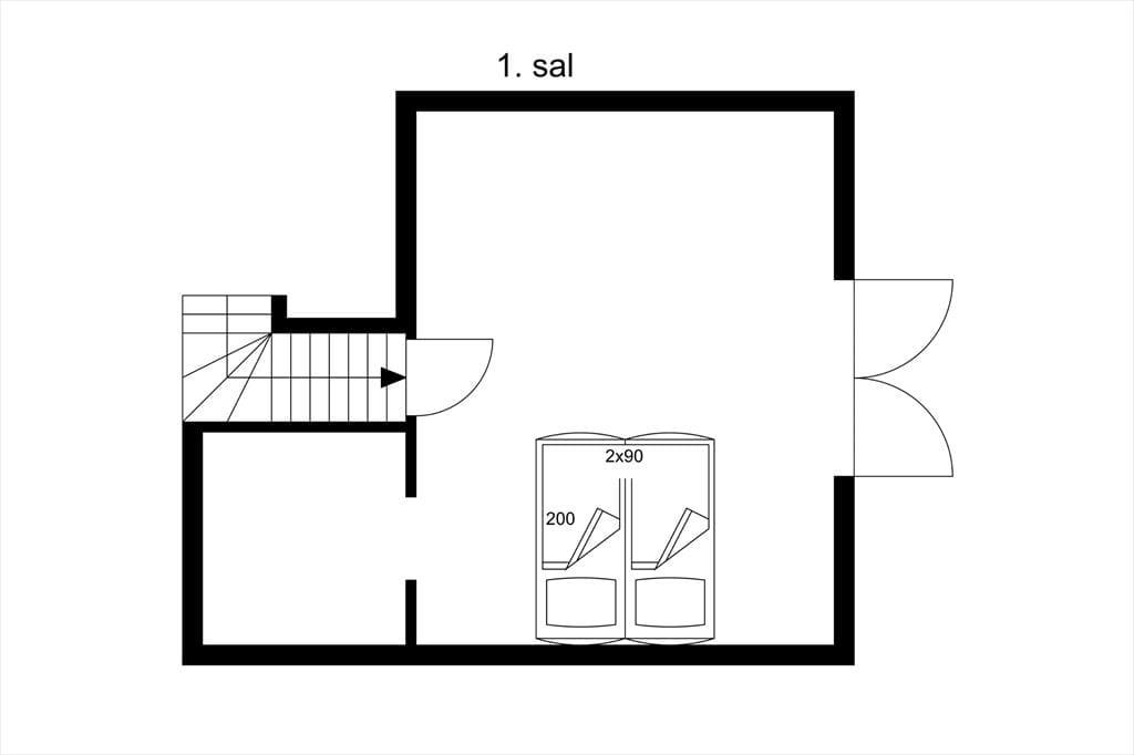 Det er tydeligvis ikke et typehus, der ligger her på Norges Fjelde 9, for arkitekturen er tilpasset den kuperede naturgrund, så der er flere niveauer og store vinduer vendt ud mod det smukke landskab. Den særlige planløsning betyder også, at I har stor fleksibilitet, alt efter om I vil hygge jer sammen, eller om I trænger til at slappe af hver for sig med en god bog, en podcast eller en film på fladskærms-tv’et. I den sænkede stue er der klinkegulv med indlagt varme, og i det centrale opholdsrum står en brændeovn klar til årets køligere dage og aftener. Stueplan byder på et brusebadeværelse og et enkelt soveværelse, og husets vindeltrappe fører op til endnu et soveværelse på førstesalen. Alt i alt får I med andre ord en fin og stemningsfuld feriebolig til fire personer!