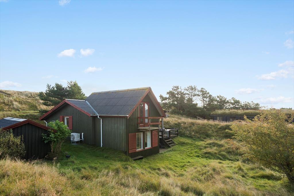Dette skønne sommerhus, der ligger på en stor klitgrund mellem Fanø Bad og Nordby, emmer af charme og personlighed. Det grønmalede træhus har en atypisk opbygning i flere plan, og hver eneste krog indbyder til afslapning og hygge – og takket være den rolige placering på en lukket vej får du rig mulighed for at trække stikket og komme helt ned i tempo.