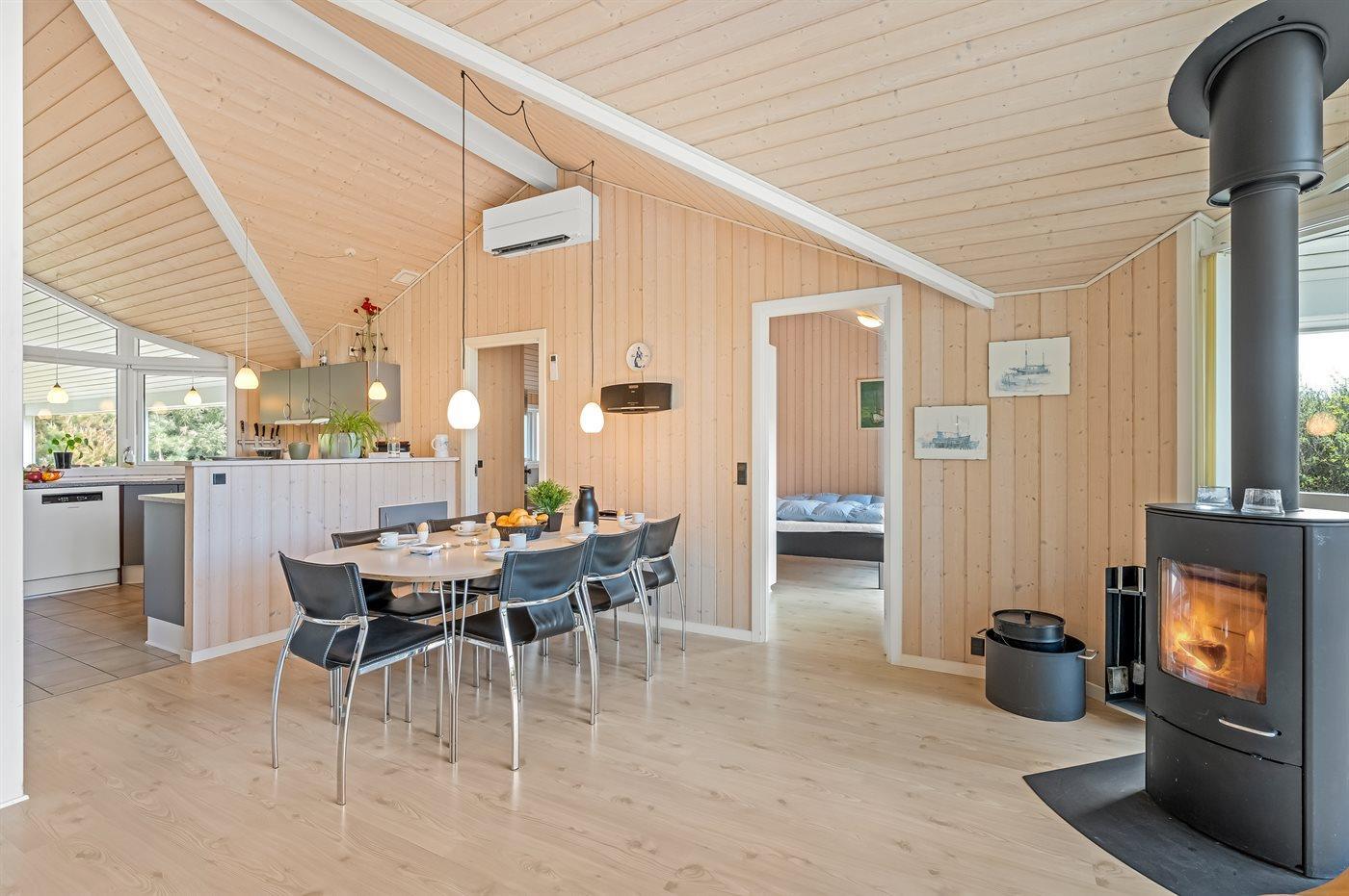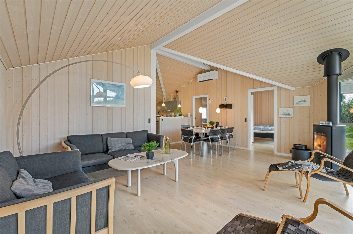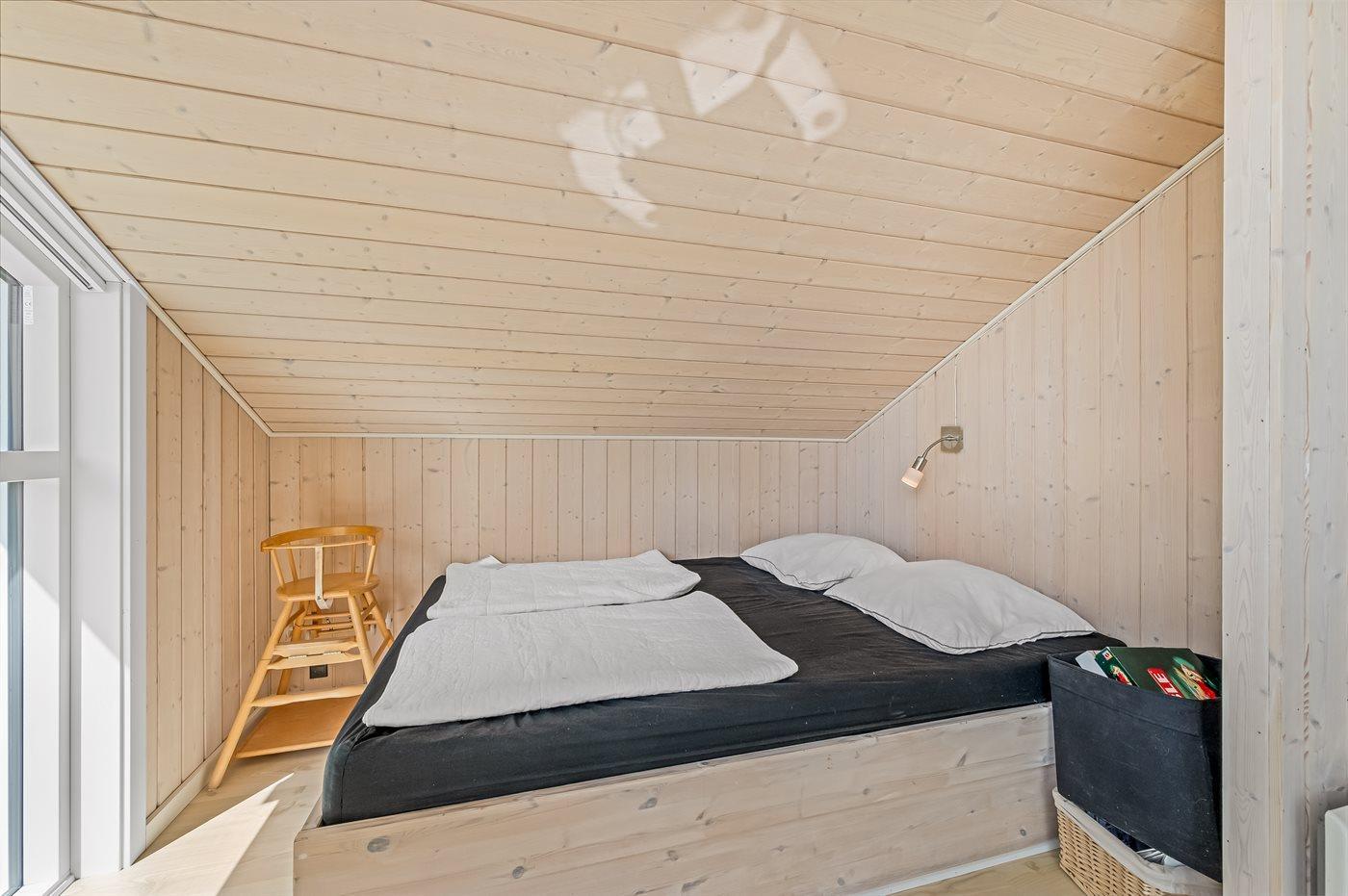 Tidssvarende hus med skøn beliggenhed. Huset er opført i 2011 og fremtræder meget indbydende. Huset er bygget med loft til kip. Der trægulve i stuen, hvor der er et lyst og åbent vinduesparti. 3 gode værelser og derudover en alkove i stuen, hvor der gives plads til 2 småbørn udover de 6 personer. Klinker på badeværelserne og i køkken området - her er der gulvvarme. Det ene af de 2 badeværelser har spa samt sauna. Huset er indrettet med kærlig hånd og har trævægge- og lofter overalt. Der er vognly til bilen og overdækket terrasse til de kølige sommeraftener.